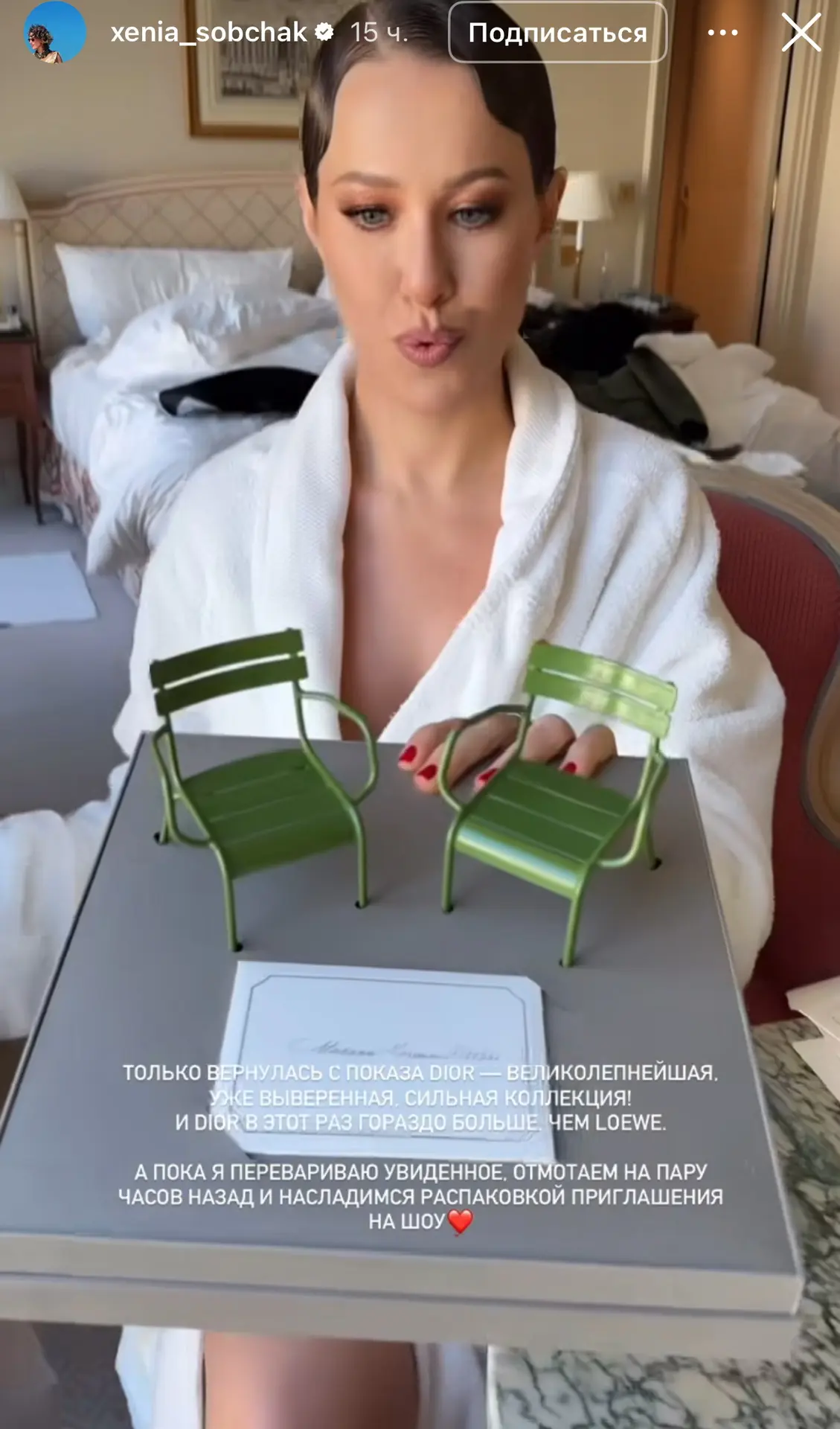 Всё при ней: чемодан с характером, наряды с амбициями и лёгкая торжественная нелепость, без которой, видно, и высокая мода чувствует себя сиротой. Париж, вероятно, выдержит. Он многое видел 😉