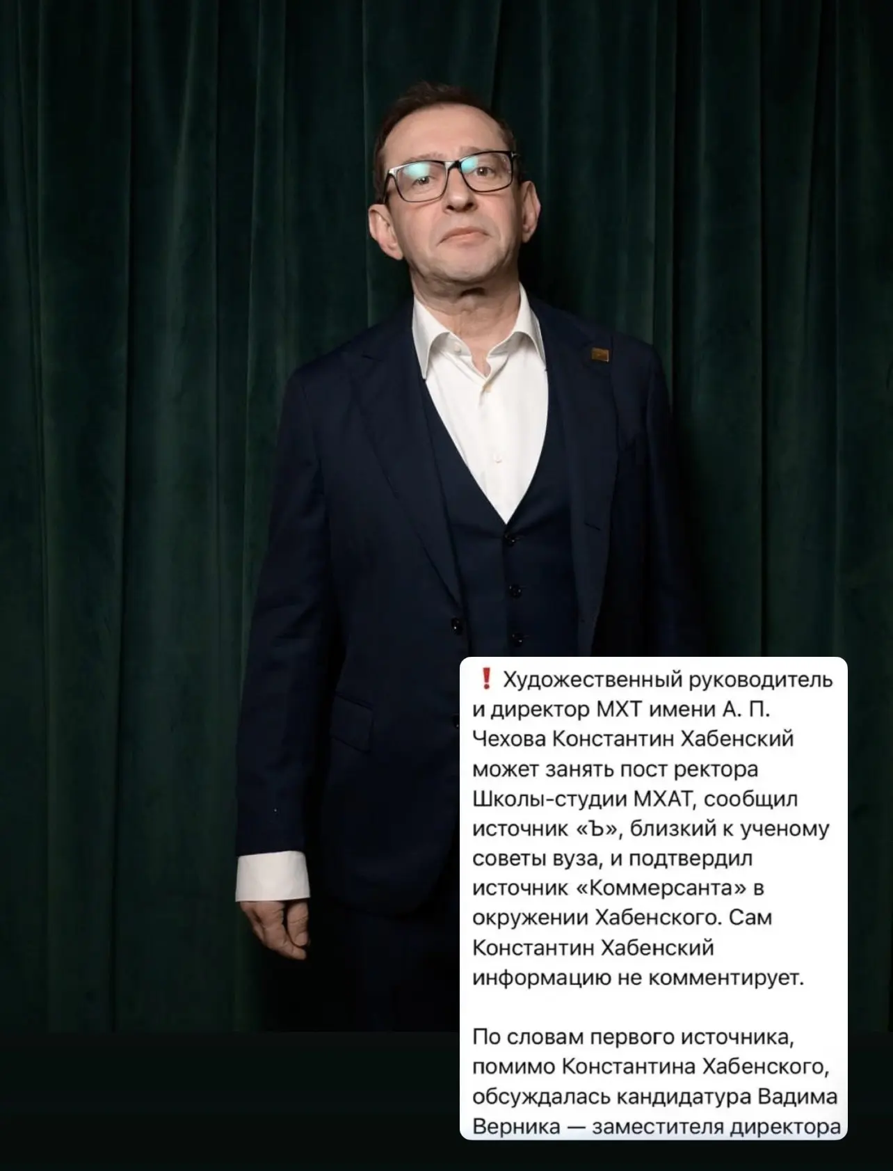 В интернетах появилась информация, что после ухода Константина Богомолова главным претендентом на пост ректора Школы-студии МХАТ является Константин Хабенский 🙂