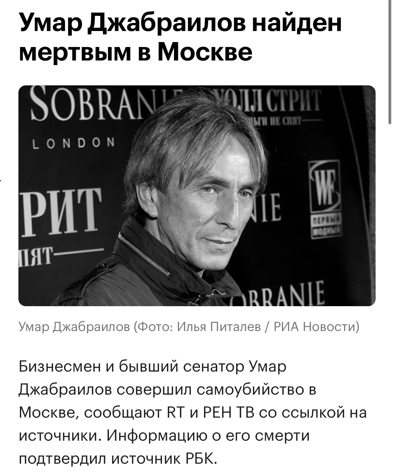 Бизнесмен Умар Джабраилов покончил с собой в Москве