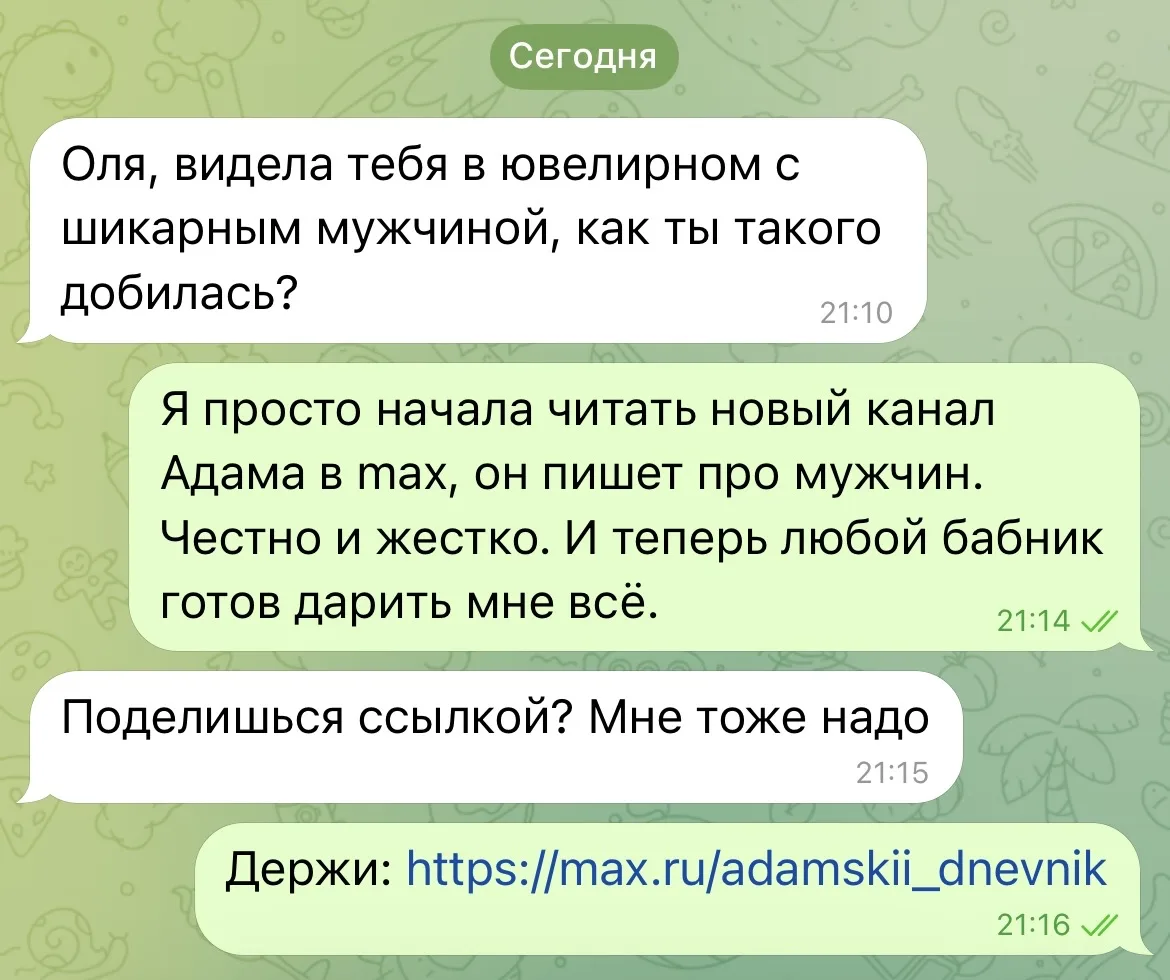 Принять эту правду тяжело, но если у тебя хватает смелости, можешь почитать канал Адама и поймешь всё.
