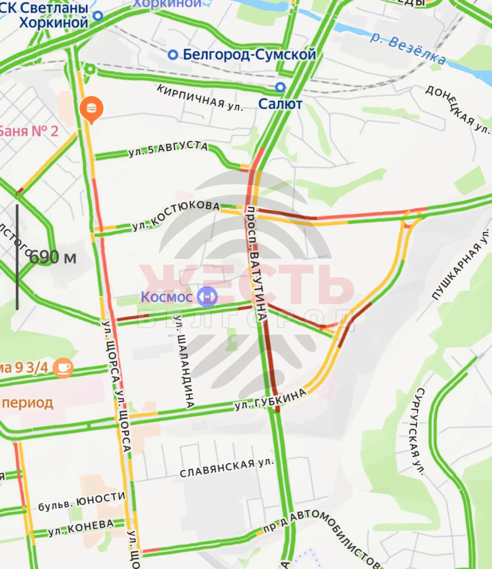 ул. Губкина – ул. Магистральная, ул. Костюкова – ул. Губкина, ул. Губкина – пр. Ватутина, ул. Щорса – ул. Костюкова.