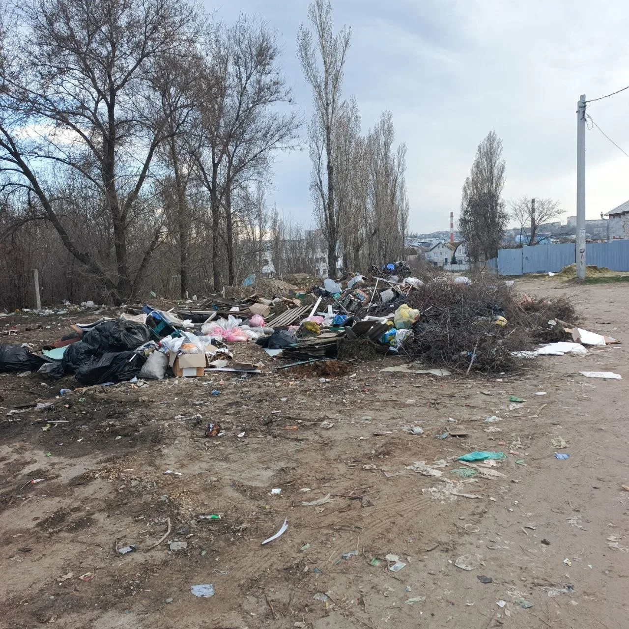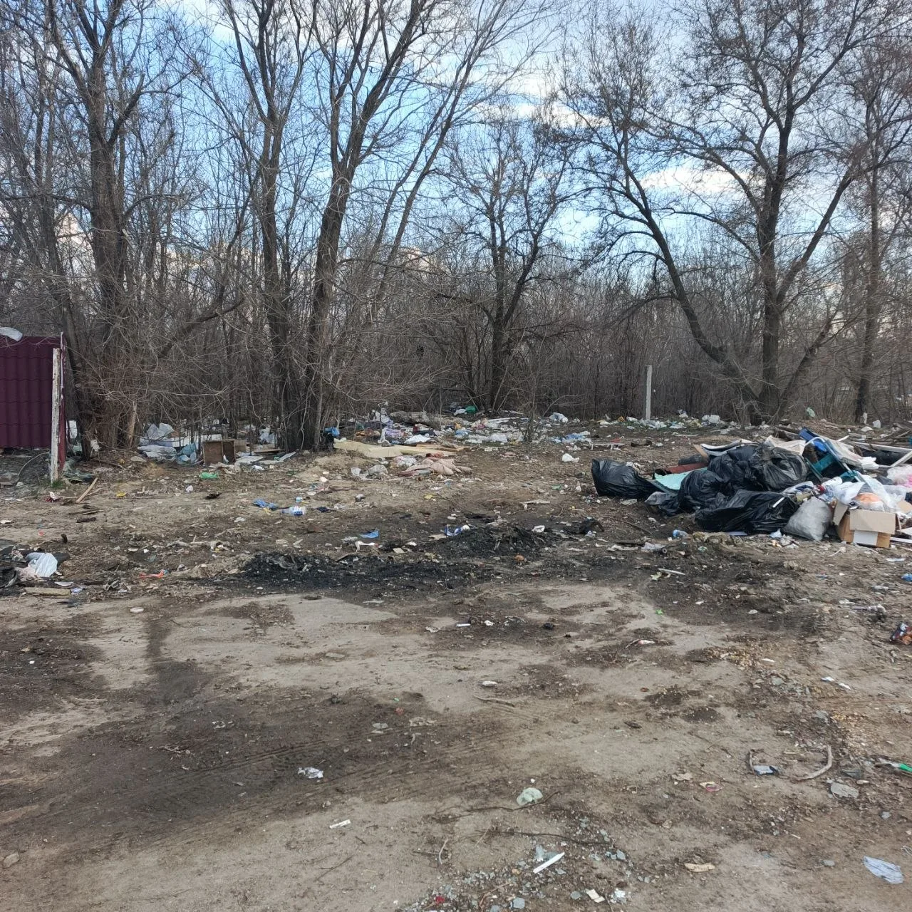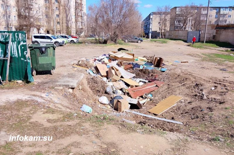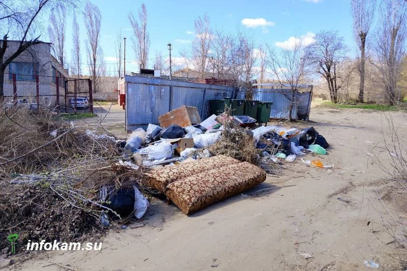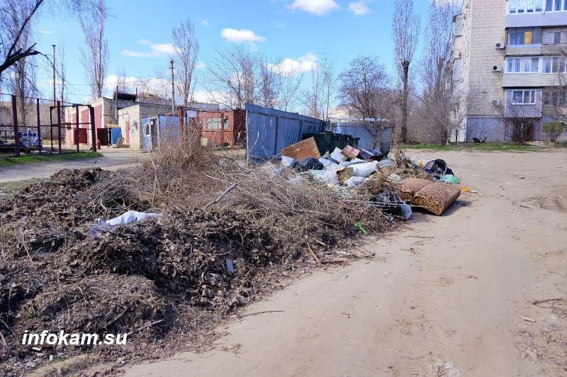 Итог: типичная свалка в Камышине на улице Алтайской по состоянию на 6 апреля 2026 года. Контейнеры регулярно очищаются. Основная часть отходов на свалке — ветки, листва в мешках, части мебели и… автопокрышки.