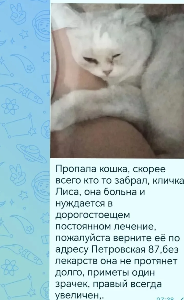 Потерялась , кошка она болеет, ей нужно лечение, кто найдёт сообщите