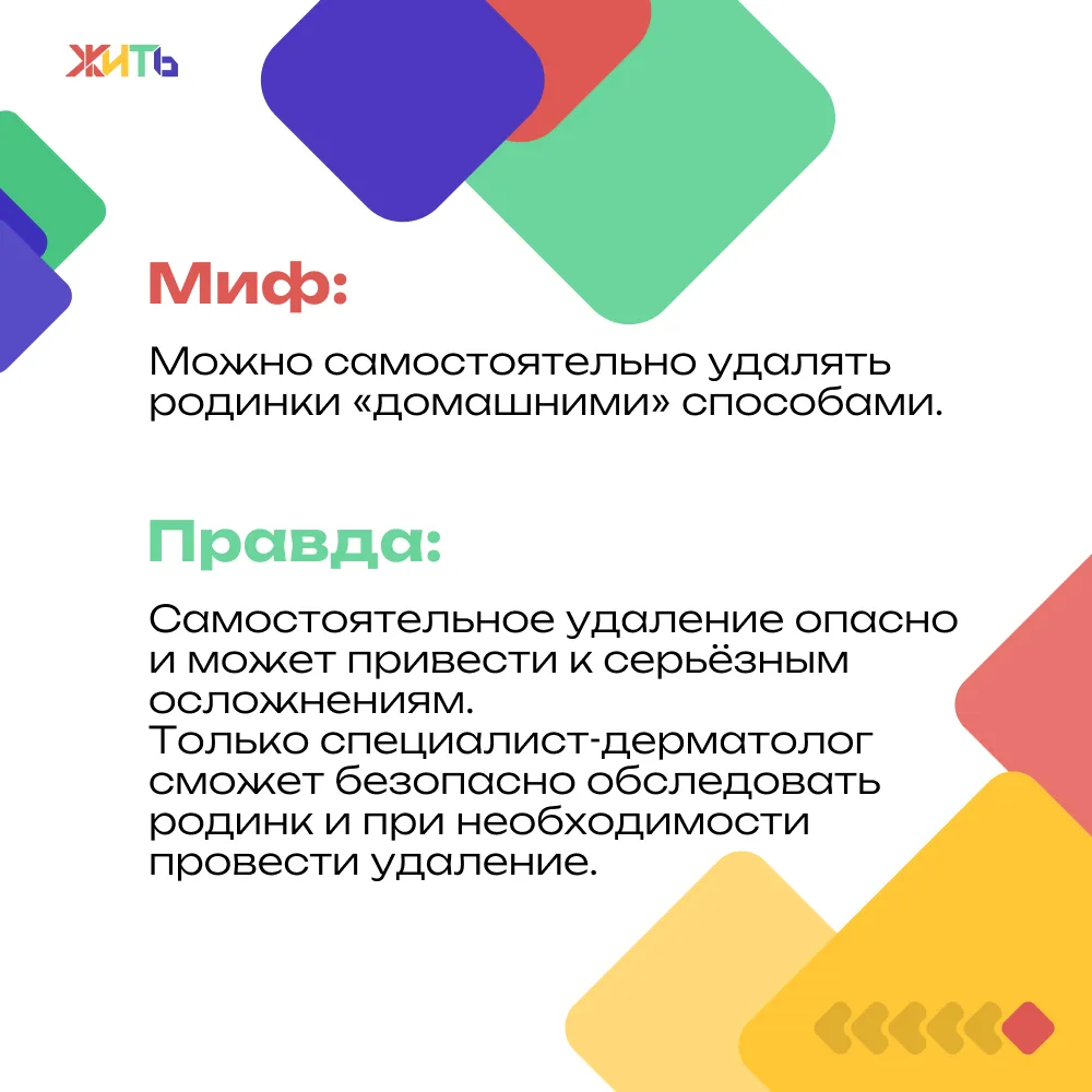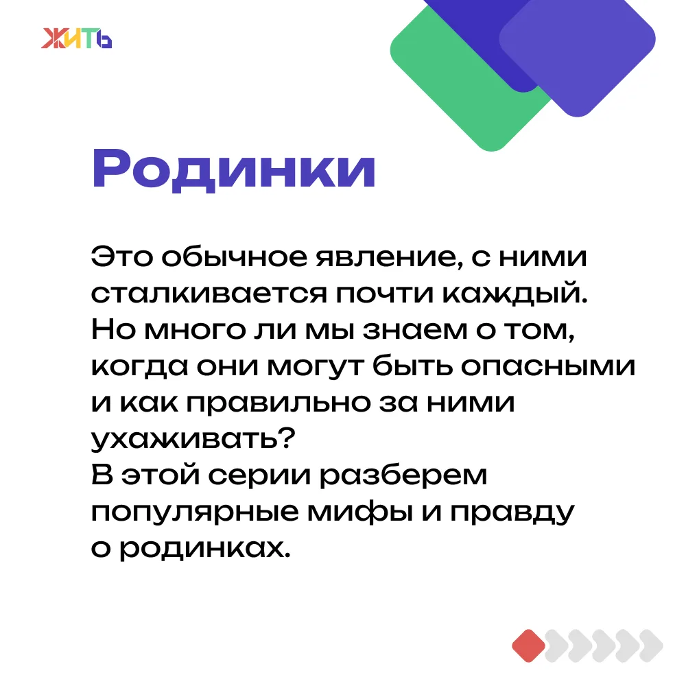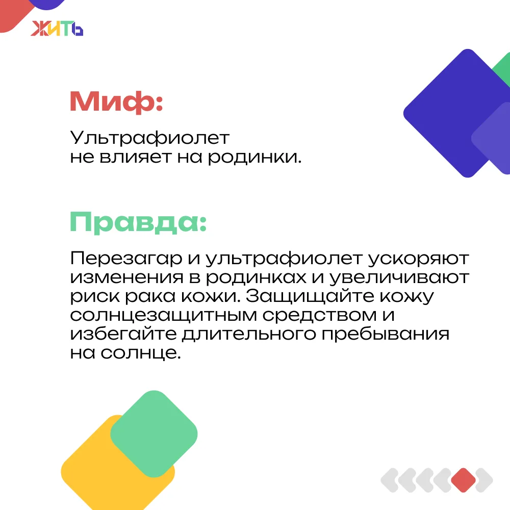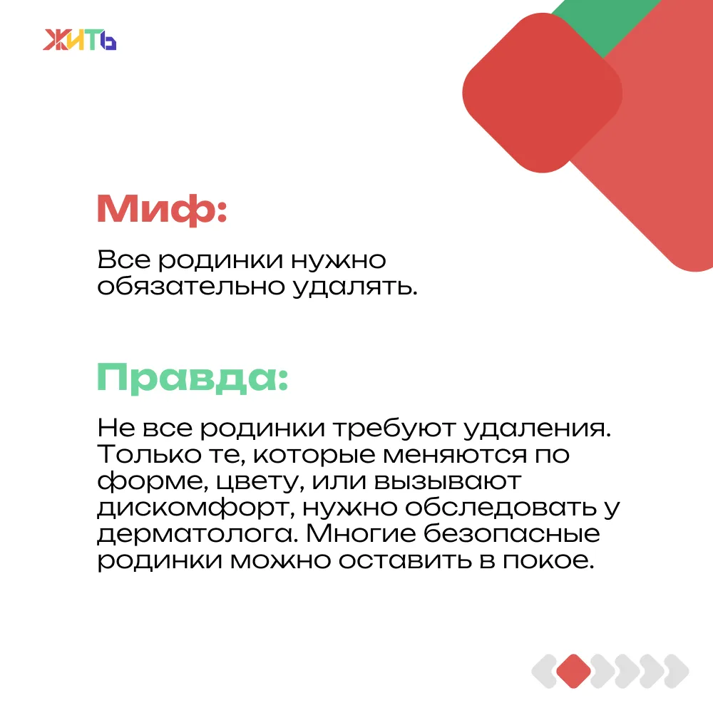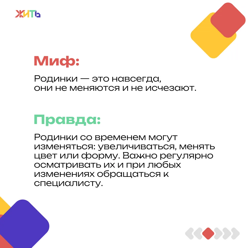 Осведомленность о родинках часто основывается на мифах, которые могут ввести в заблуждение или даже навредить. Сегодня мы бы хотели обсудить распространенные заблуждения, а также резвеять некоторые из них. Подробнее — в наших карточках 🧐