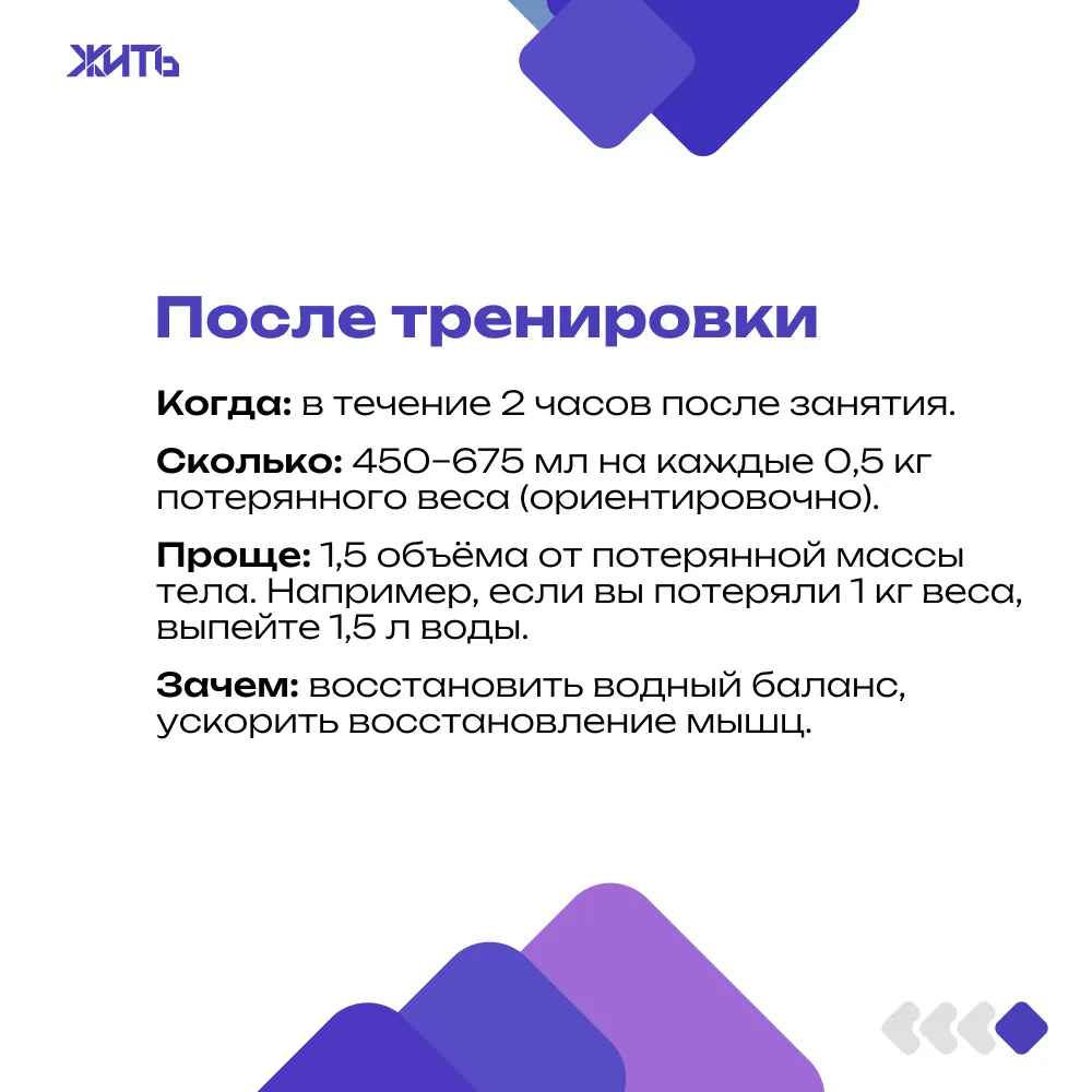 Достаточное количество воды — залог эффективной спортивной тренировки и быстрого восстановления. А сколько нужно пить до, во время и после тренировки? Поможем разобраться!