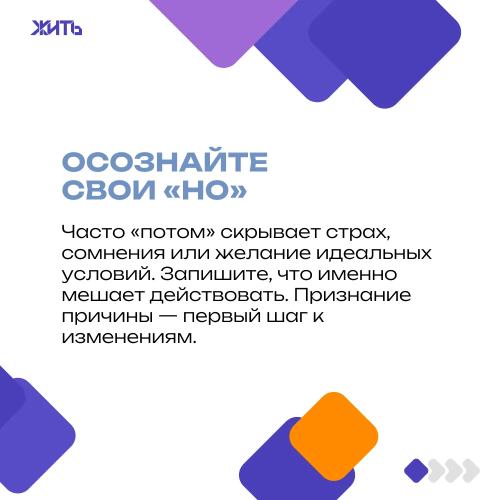Всем нам свойственно откладывать «на потом»: ждать идеального момента для путешествия, смены работы или нового хобби. Но жизнь не ждёт. Прокрастинация и страх перемен мешают действовать, в то время как время беспощадно уходит. Сегодня — о том, как перестать откладывать жизнь и начать её осознанно проживать уже сейчас.