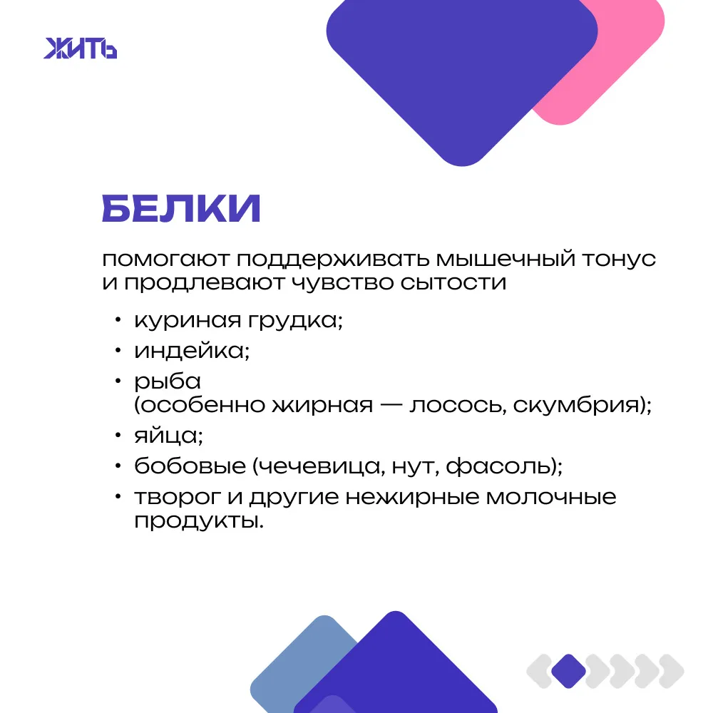 • Относитесь к питанию осознанно. Ешьте разнообразно и сбалансированно, без строгих запретов. Разрешите себе иногда любимые «вредности» без чувства вины.