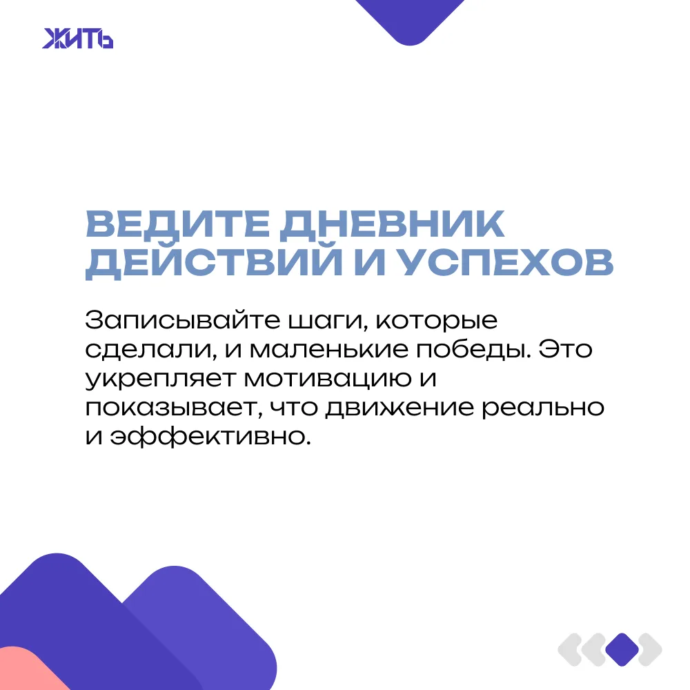 • Сфокусируйтесь на своем прогрессе. Ведите дневник достижений — записывайте даже маленькие победы.