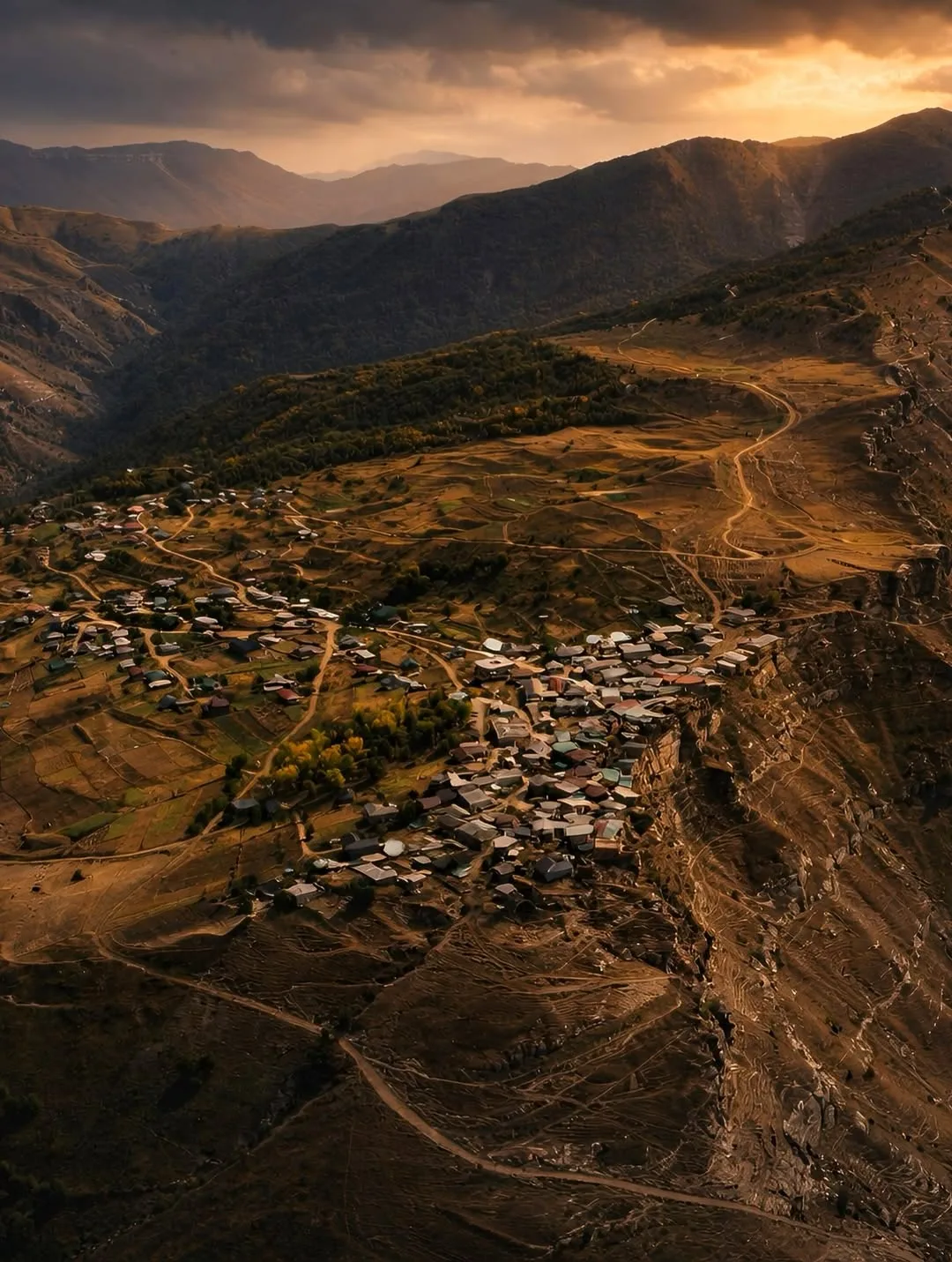Дома здесь выстроены вдоль обрыва так близко, что кажется — шаг в сторону, и под ногами откроется пропасть. Узкие каменные улочки петляют между стенами, тяжёлые деревянные двери хранят старые узоры, а ветер свободно проходит сквозь всё село, напоминая о высоте и просторе.