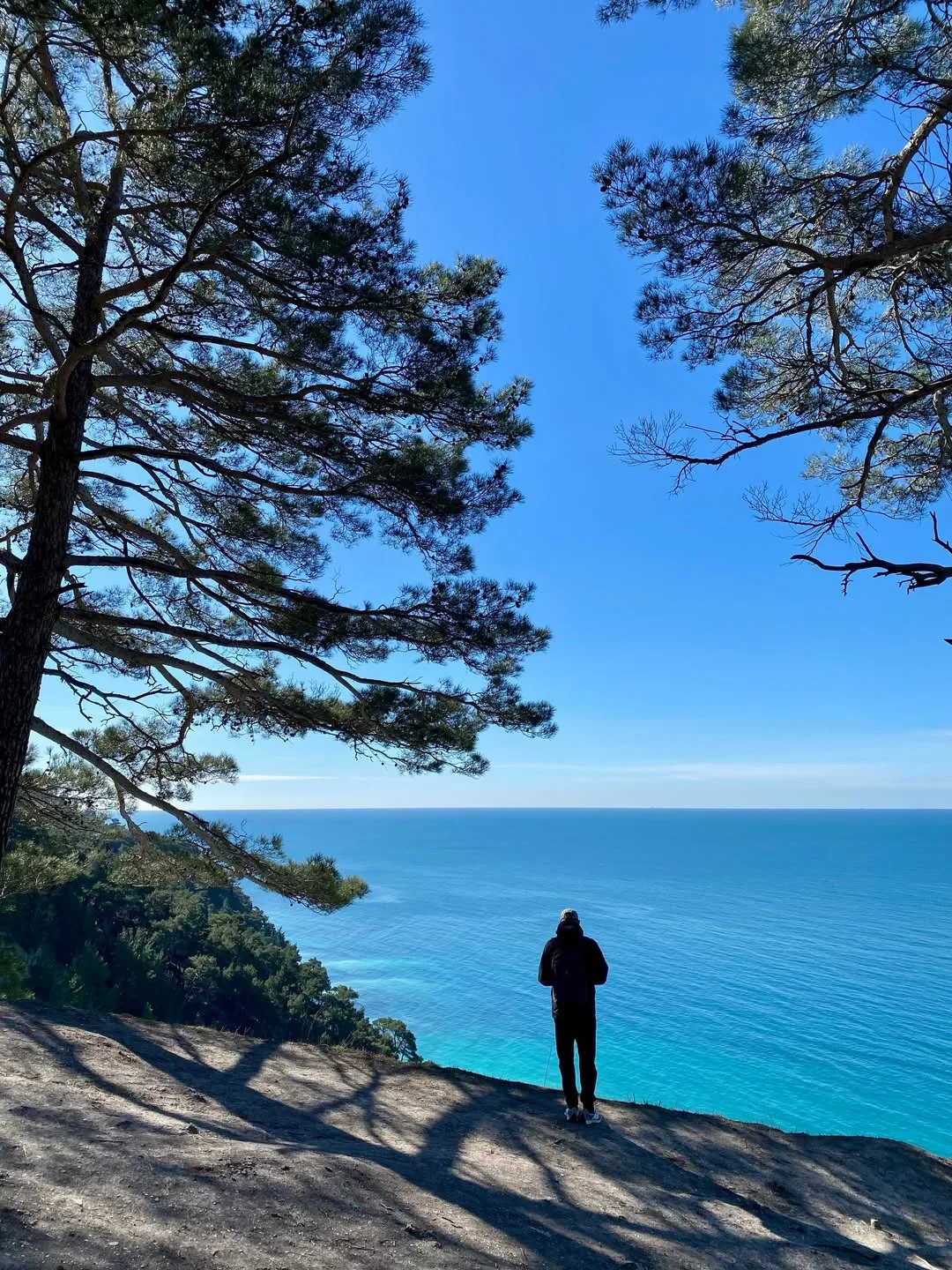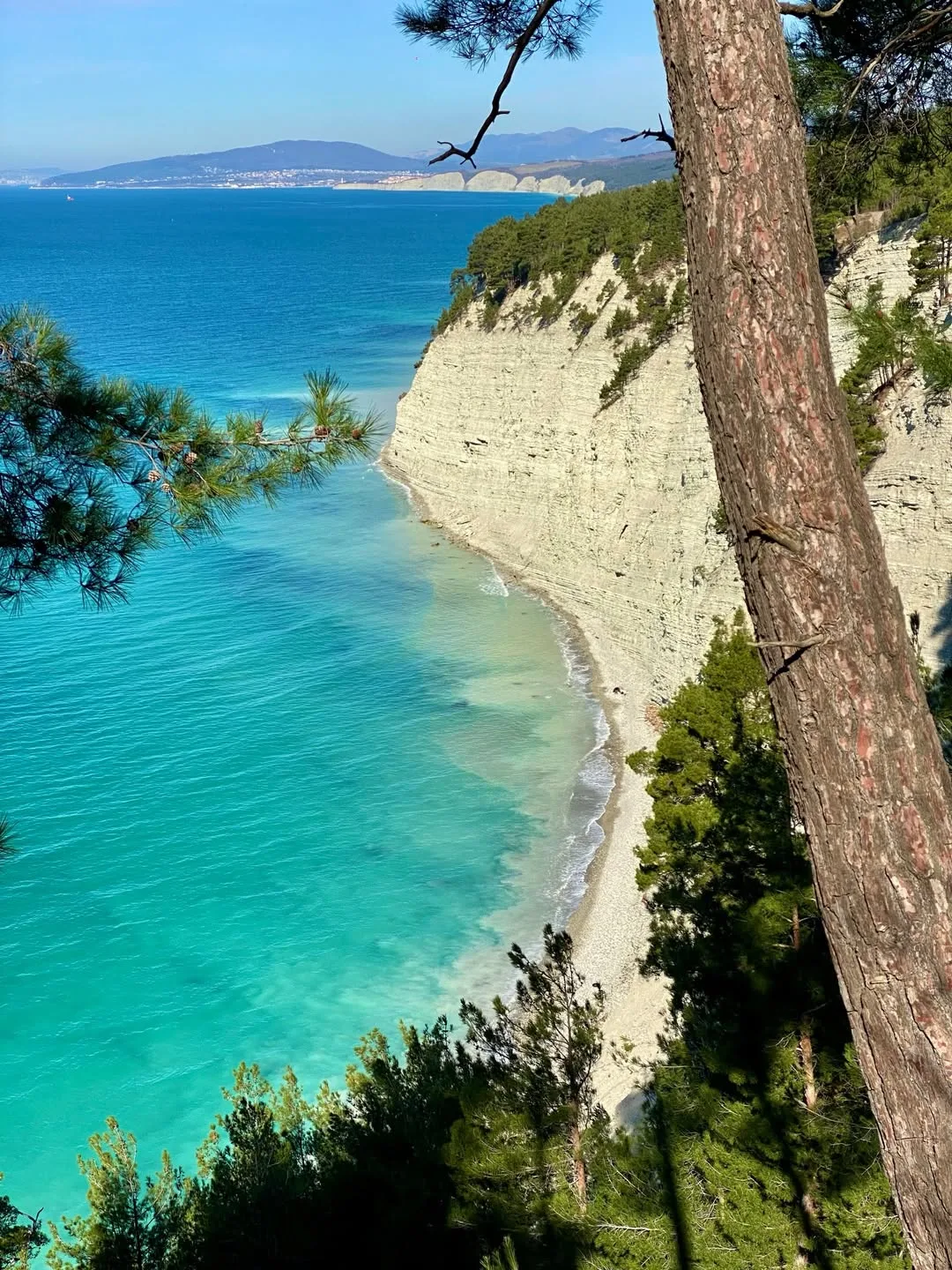 Недалеко от Геленджика, между Джанхотом и Дивноморским, находится место, которое называют «Голубая бездна». Смотровая на высоком обрыве над морем, где сосны буквально нависают над скалами, а воздух смешивает хвою и соль.
