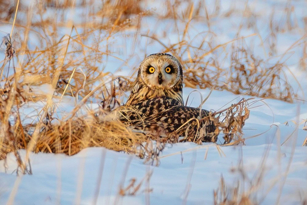 Над полем бесшумно скользит силуэт с ярко-жёлтыми глазами. Болотная сова охотится на высоте всего нескольких метров, высматривая полёвок и других мелких грызунов. В отличие от большинства сов, она часто активна не только в сумерках, но и днём.