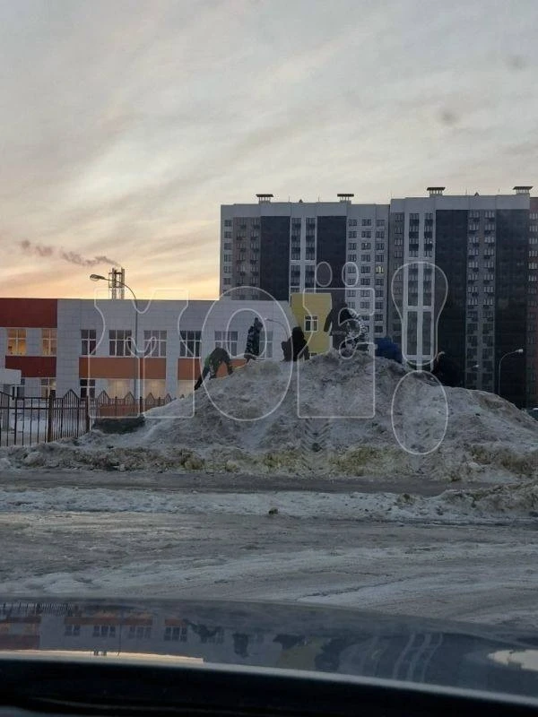 ⛷️ Дети играют у школы на опасном сугробе, рядом с дорогой.