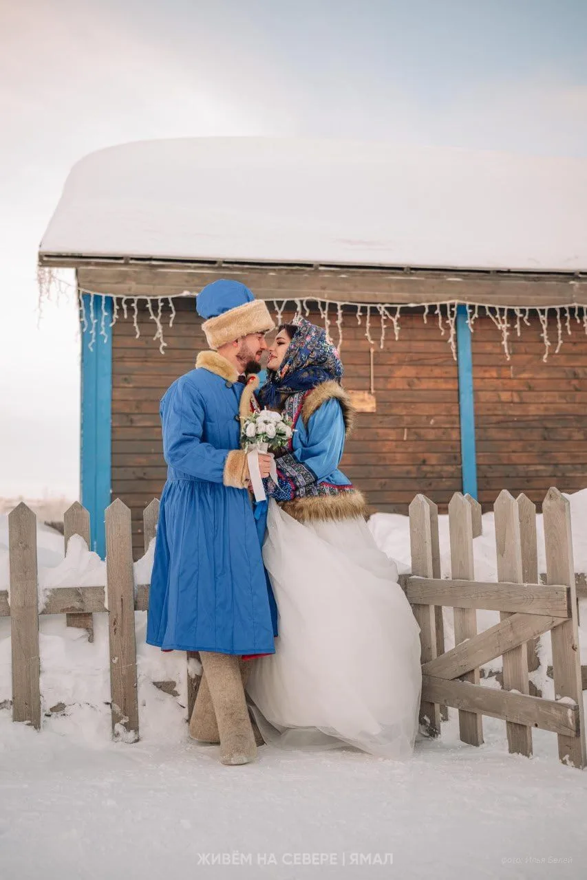 Молодожёны из Лабытнанги сохранили воспоминания о таком важном событии в зимней фотосессии. Русский стиль 🔥