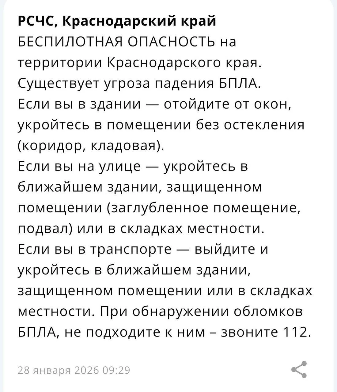 На территории Краснодарского края объявили беспилотную опасность.