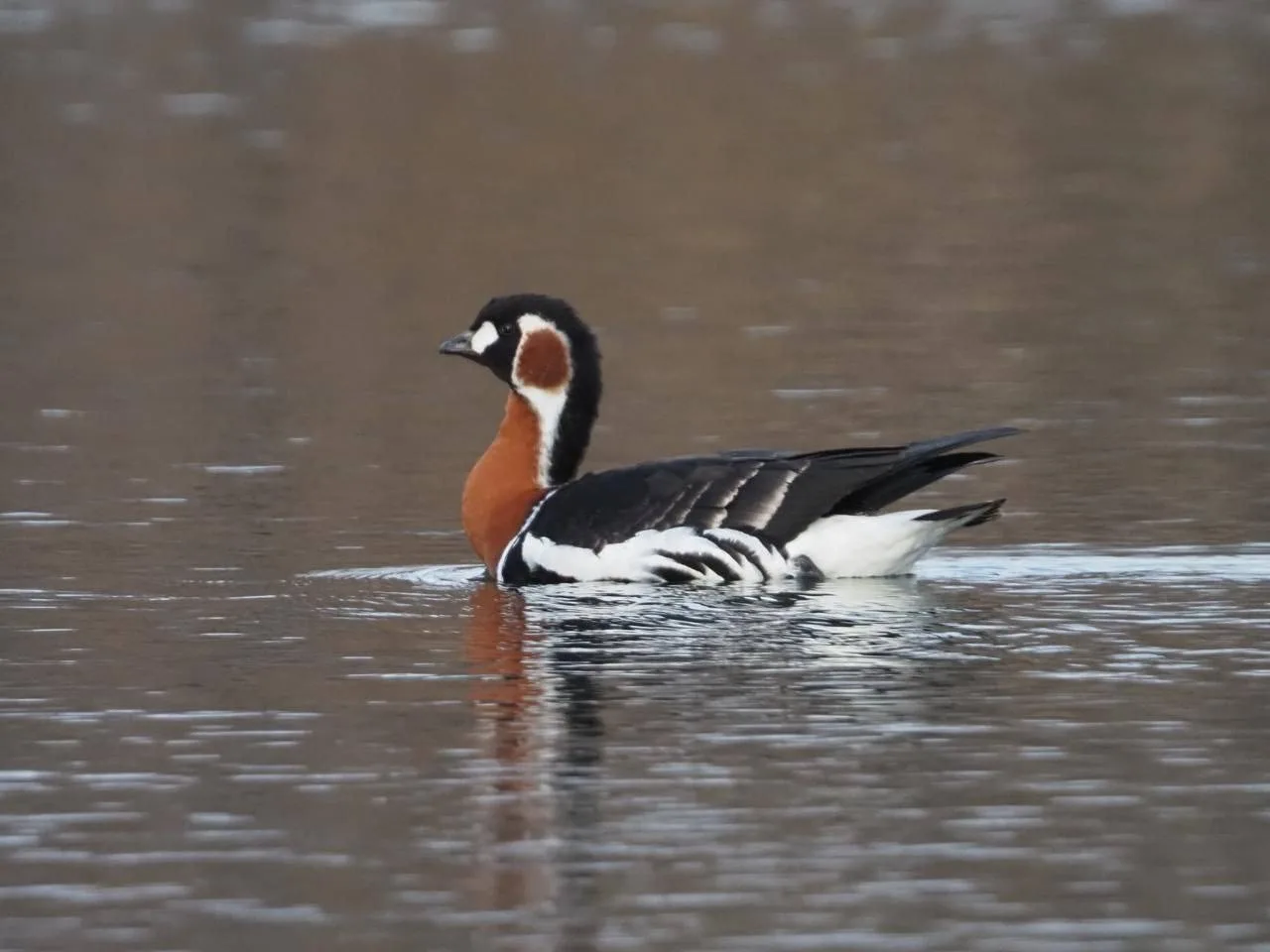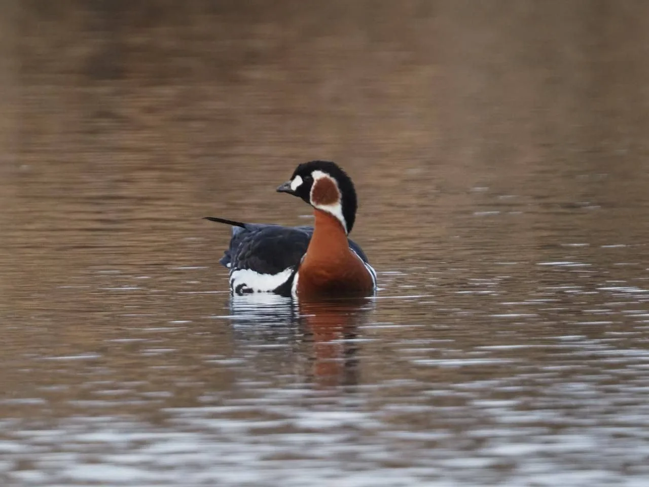 Это краснозобая казарка. Она относится к редким и уязвимым видам и занесена в Красную книгу России. Этот вид гнездится в основном на Таймыре.