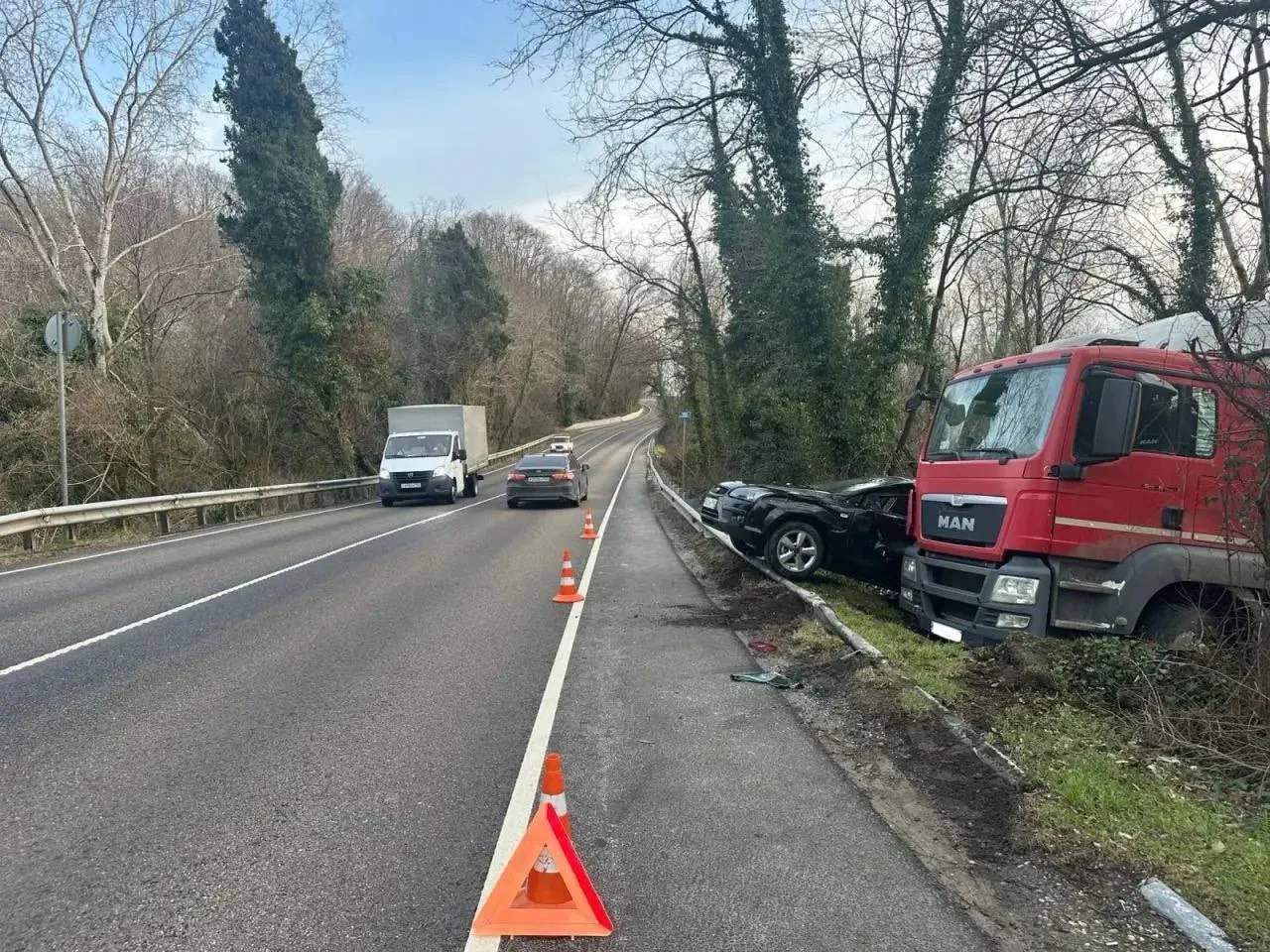 Все произошло на трассе у поселка Вардане. Грузовик MAN самопроизвольно покатился и врезался в Ford. Женщину-водителя легковушки госпитализировали.