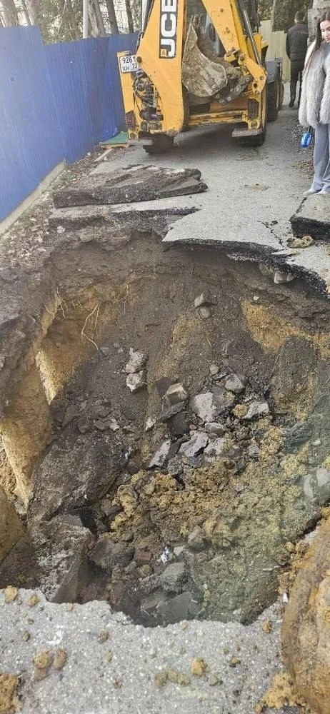 На место выехала рабочая группа. Как выяснилось, под асфальтом образовалась полость объемом более 20 кубометров.