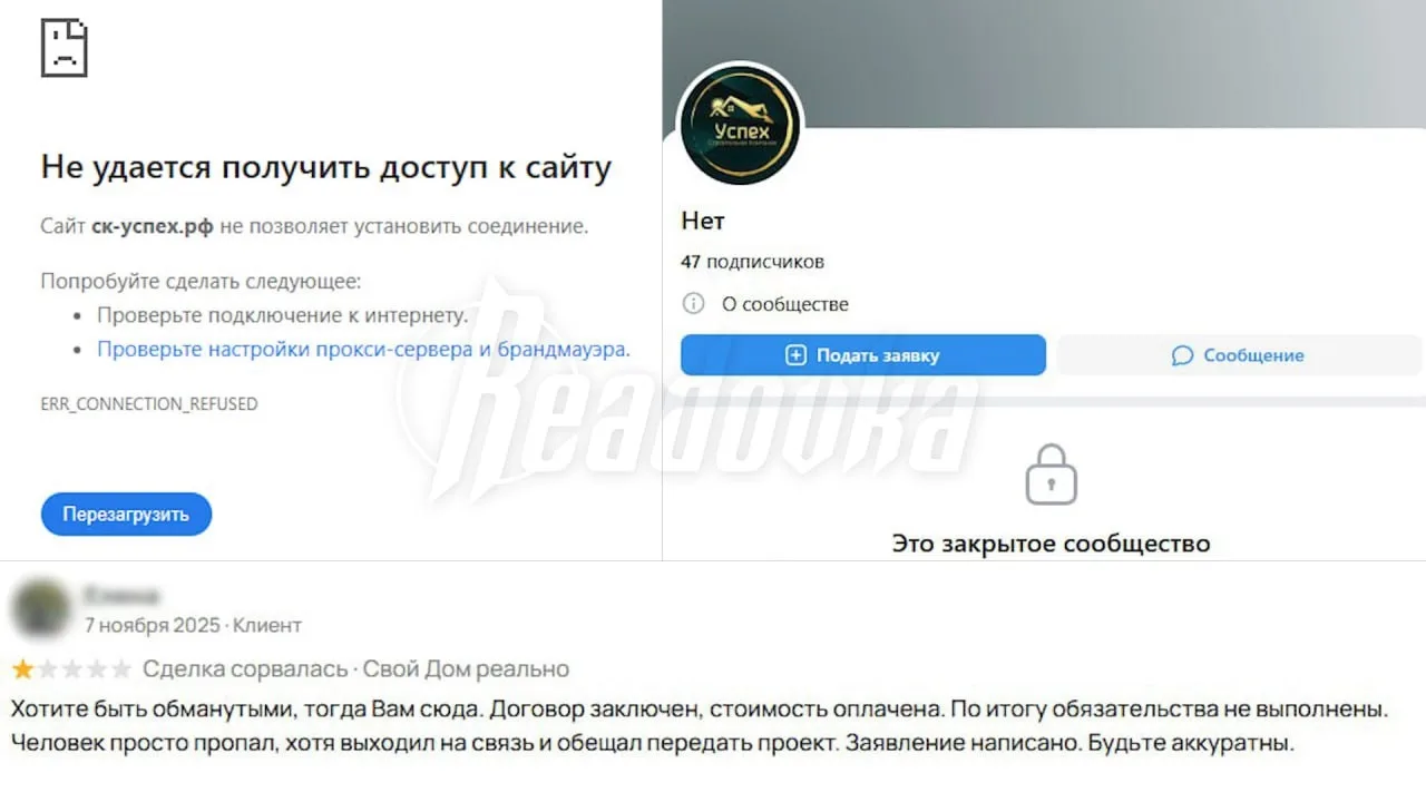Среди пострадавших от сомнительной конторы оказались более 28 человек, среди них мать погибшего участника СВО, которая вложила в строительство компенсационную выплату за сына. После получения денег подрядчик оборвал все контакты с заказчиками, а сама компания заблокировала свои страницы в социальных сетях, официальный сайт сейчас недоступен. Пострадавшие коллективно обратились в полицию, но уголовное дело пока не возбуждено. Readovka также направила запрос в ООО «Успех», но ответа не получила.