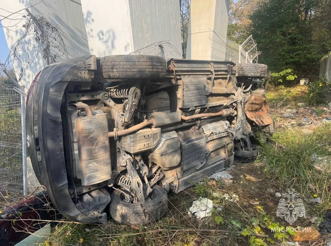 Hyundai занесло на повороте и машина вылетела с дороги и перевернулась в Хостинском районе.