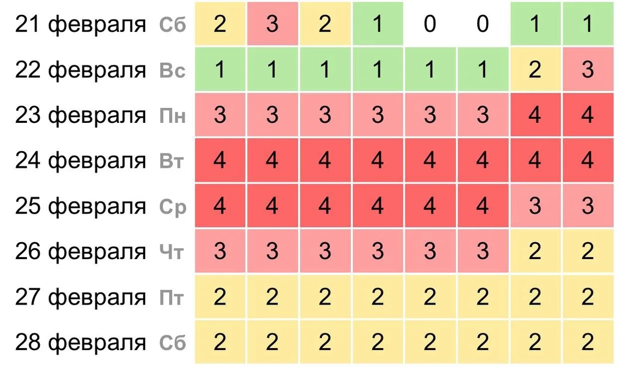 Пик активности — 24 и 25 февраля, когда буря достигнет 4 баллов.