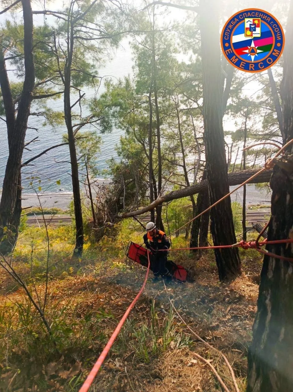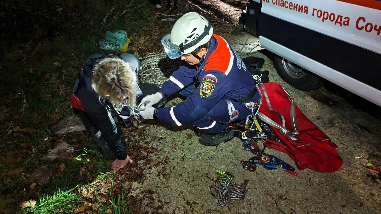 Спасатели Сочинской службы спасения оперативно спустились к пострадавшей с помощью альпинистского снаряжения. Они подняли женщину наверх и передали врачам.