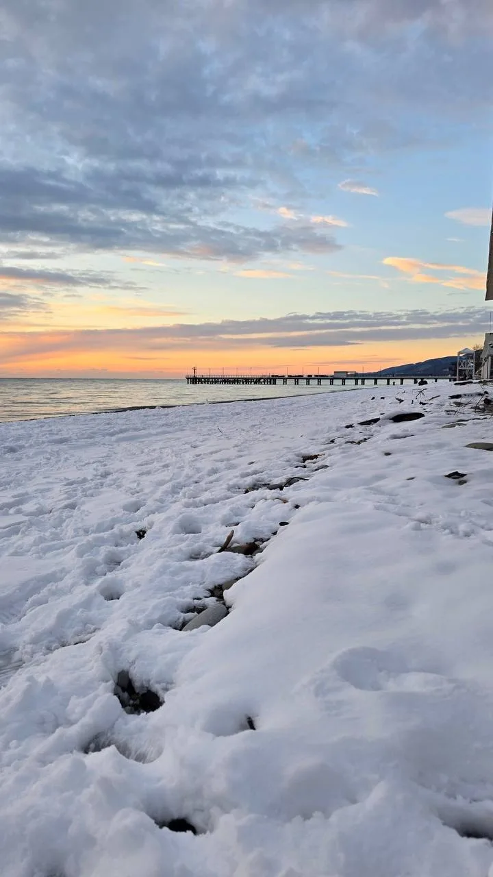 🥰Заснеженный пляж в Лазаревском
