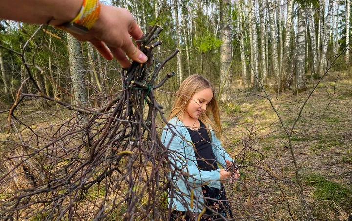 ✅️ Собираем лесные венички из березы и связываем в пучки по 10-13 штук.