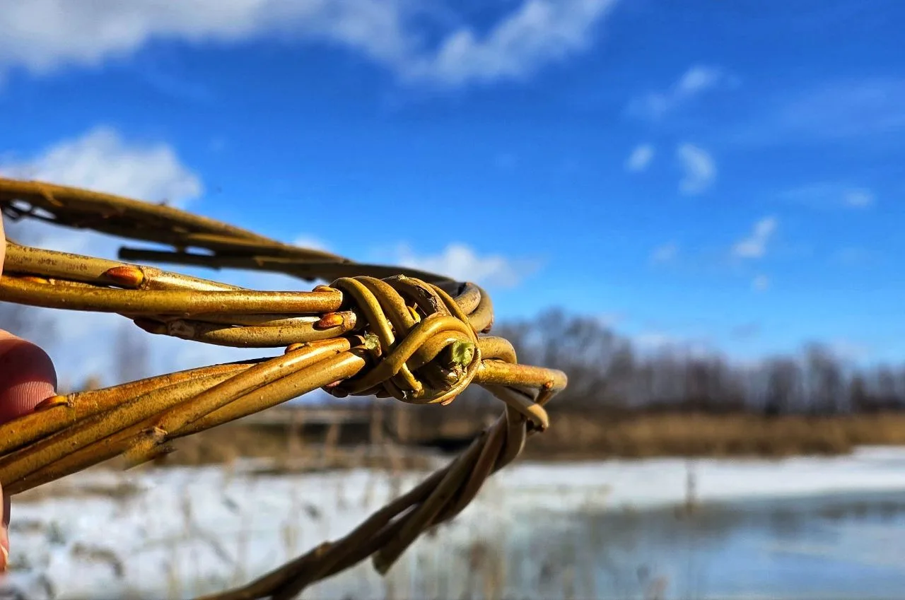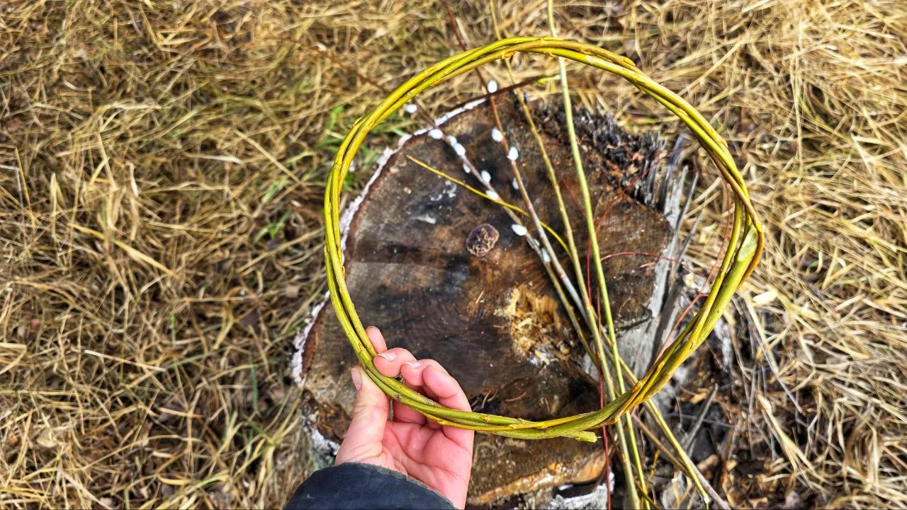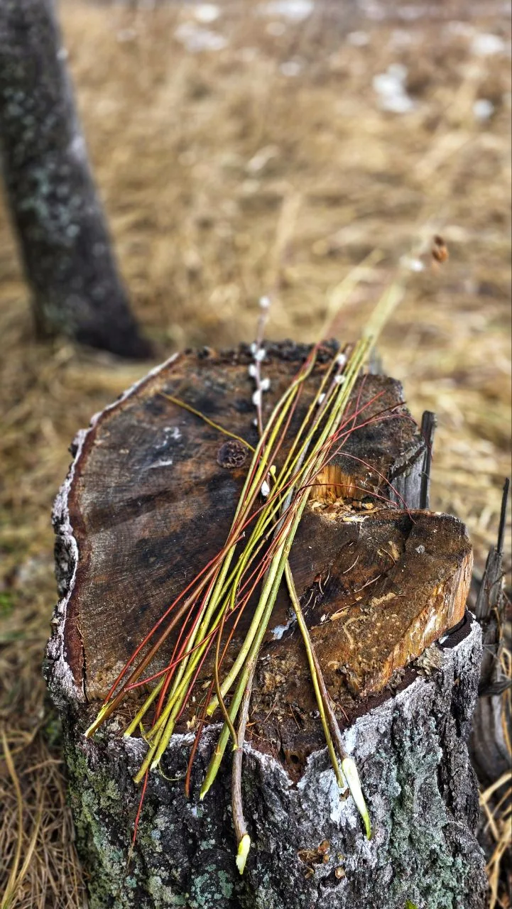 Если вам неприменно нужны свежие ветки с сережками - из них, конечно, плести проще - поищите поваленое дерево, как сделали мы. Ветра были сильные и старые, больные или просто хрупкие деревца - не устояли.