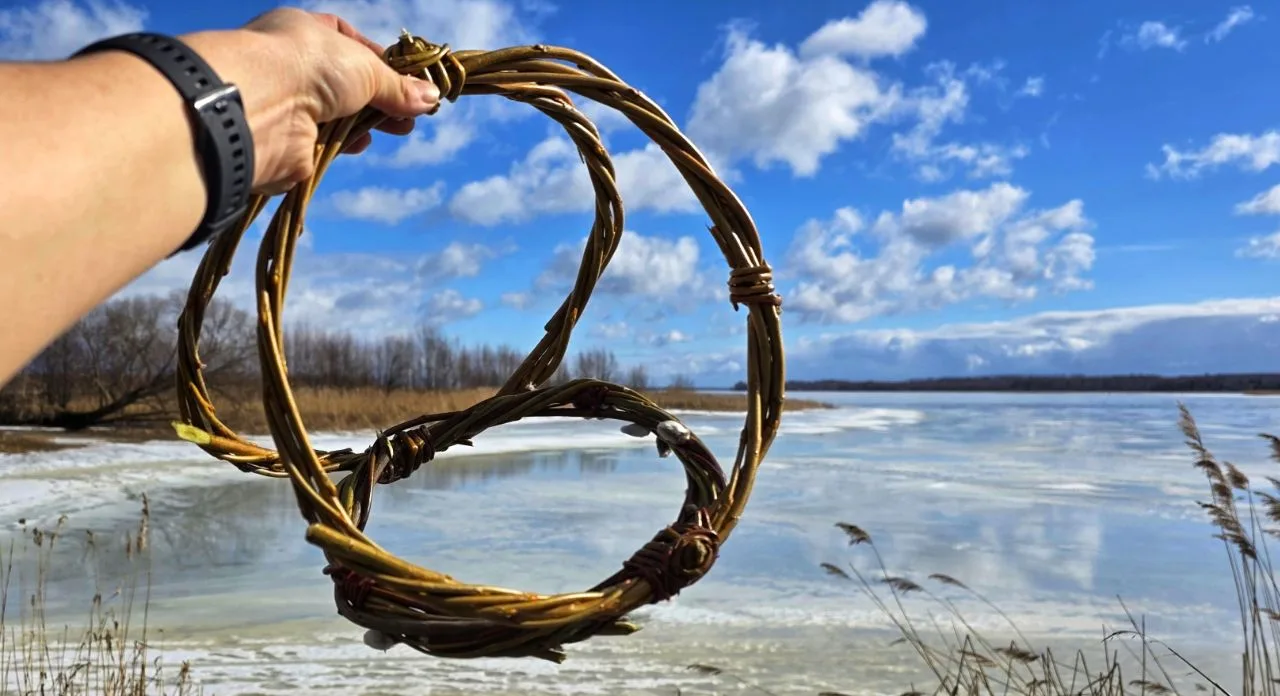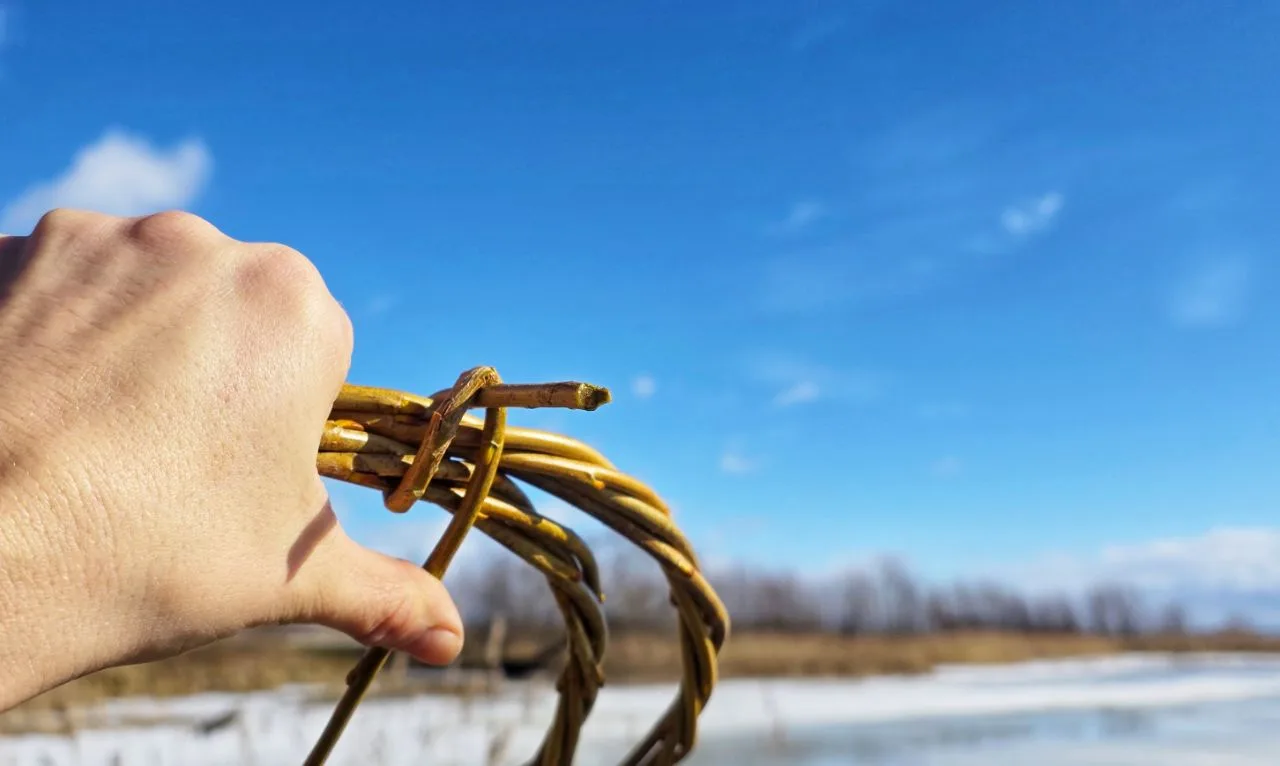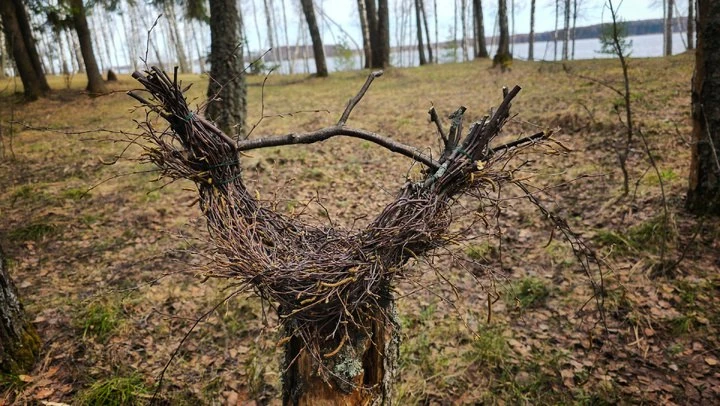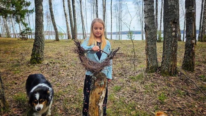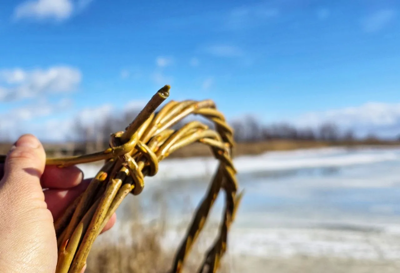 Если вам неприменно нужны свежие ветки с сережками - из них, конечно, плести проще - поищите поваленое дерево, как сделали мы. Ветра были сильные и старые, больные или просто хрупкие деревца - не устояли.