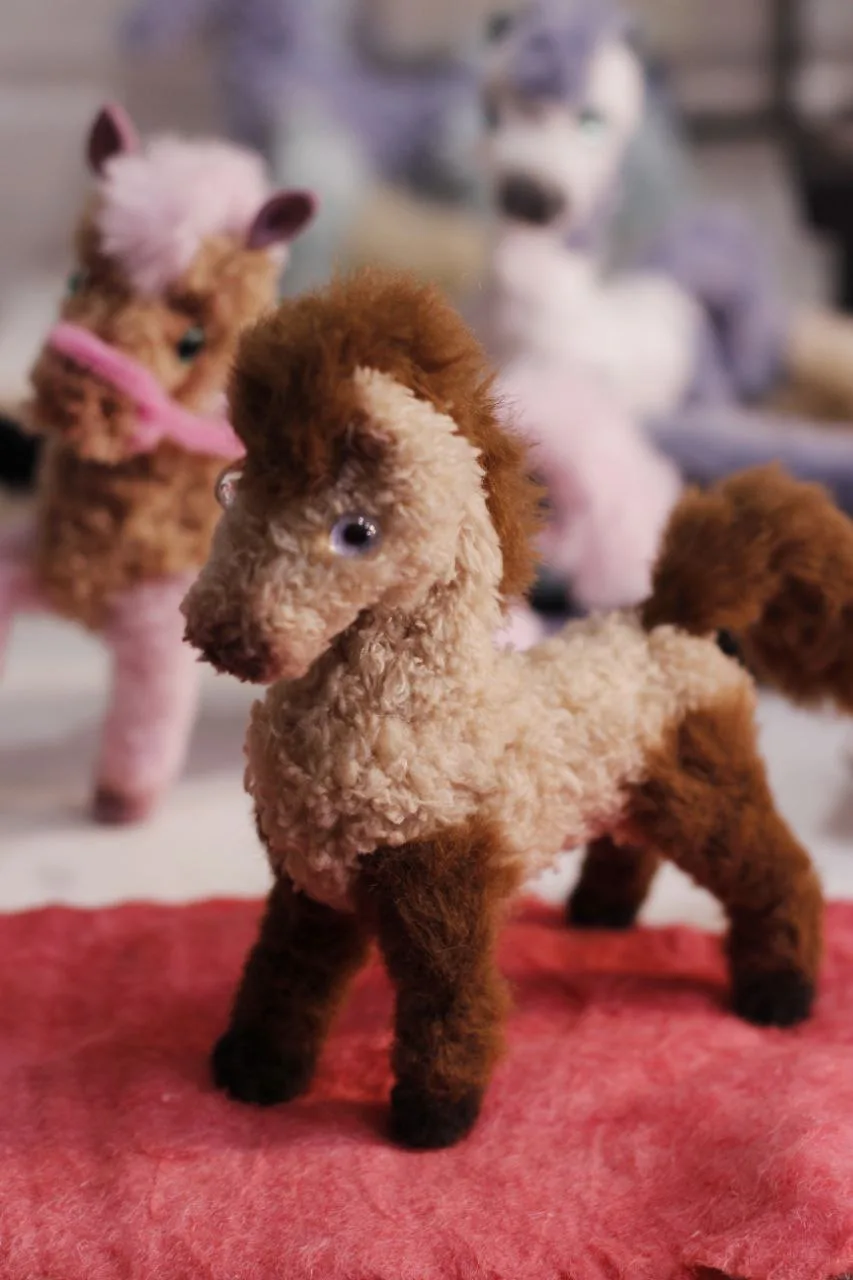 Замечательно видеть, как сильно вырос интерес к игрушечным лошадкам за последние несколько лет. Большую часть своей трудовой жизни я делала пушистых игрушечных лошадок для маленьких детей, но теперь рынок расширился и включает в себя реалистичных, раскрашенных лошадок для детей постарше и подростков. Мне очень нравится создавать этих детализированных лошадок. Каждая из них немного отличается и имеет свой собственный характер."