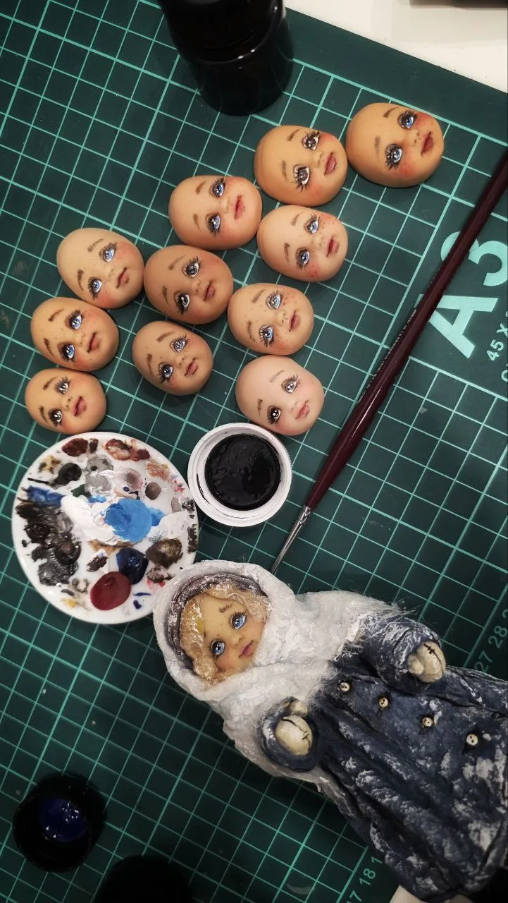 Вчера были ночные мордочки для ватных игрушек. Роспись лиц - это почти ювелирная работа, но такая спокойная и каждая мордашка получается со своим характером.