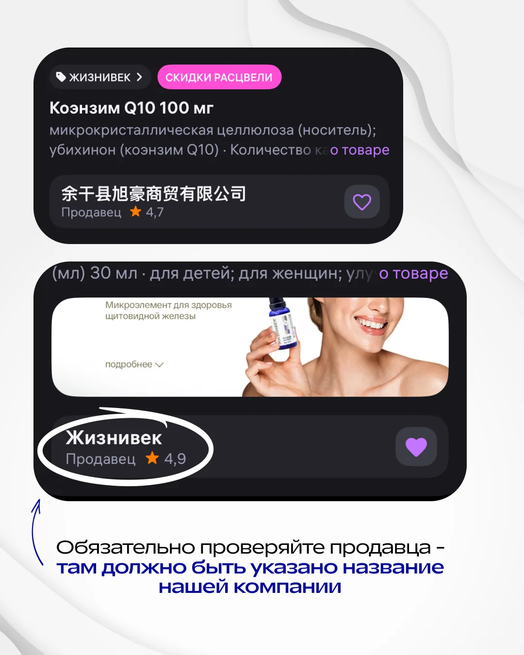 ⚡️ покупайте продукцию только если в графе «продавец» на маркетплейсах стоит «Жизнивек» или на официальном сайте;