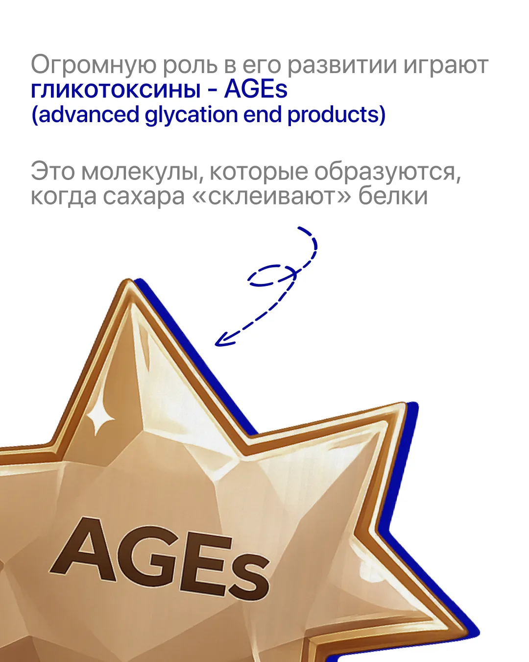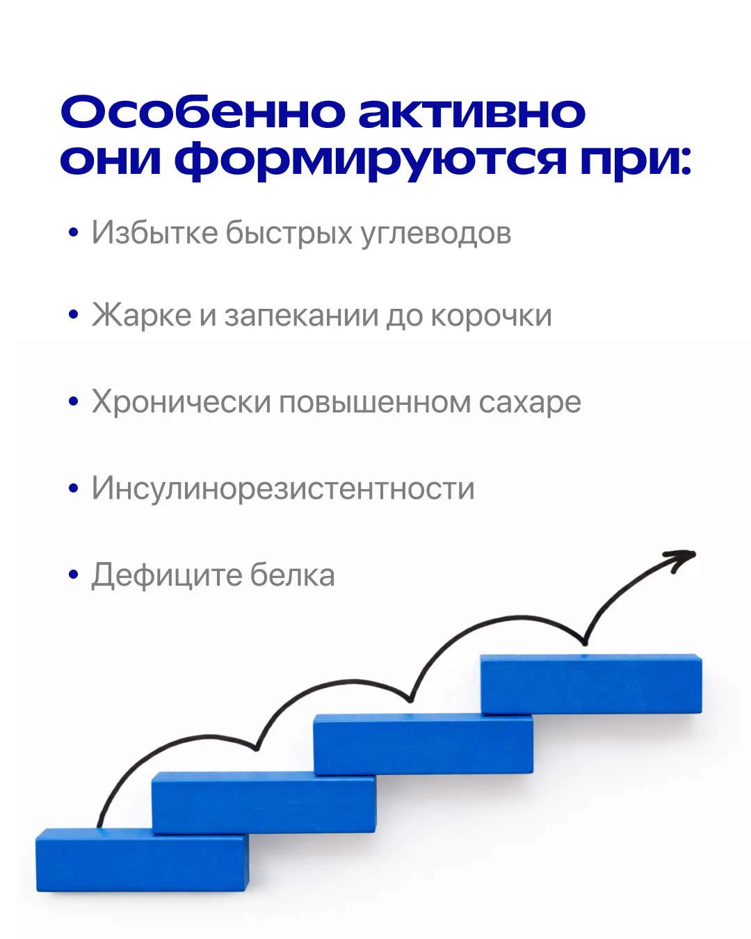 Это молекулы, которые образуются, когда углеводы «склеиваются» с белками. И чем больше гликации – тем сильнее воспаление.