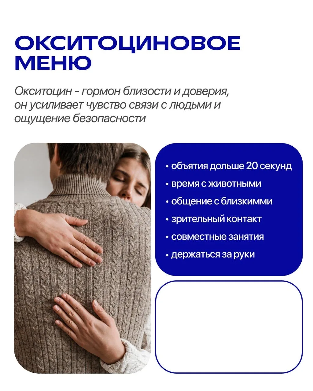 Собрали в карусели маленькое меню для разных гормонов, которые влияют на настроение, мотивацию, расслабление и ощущение близости ☀️