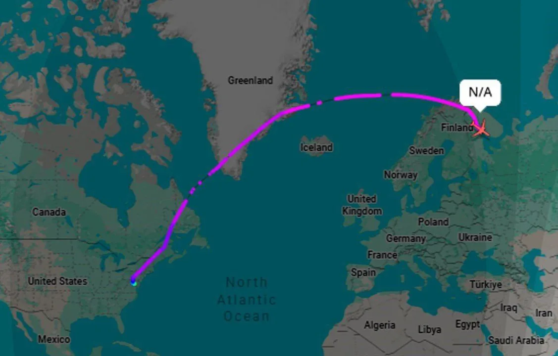 Перед входом в воздушное пространство России лайнер пролетел над Гренландией, Норвегией и Финляндией.