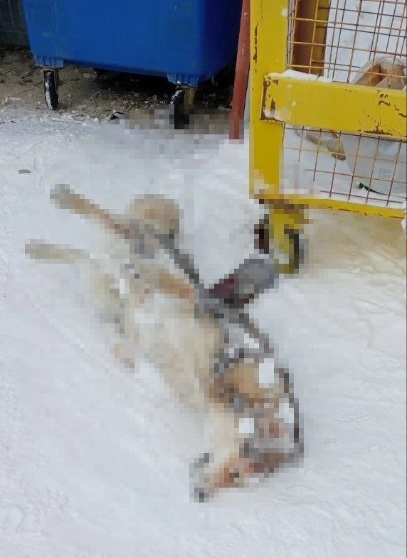 Сегодня ходил гулять в сторону колонок и обнаружил на обочине вот такое тело. Вопрос: что, у нас в посёлке появился живодёр? У меня пропала собака. Земляки, отпишитесь — может, кто‑то что‑то знает, кто этим занимается. Ужасная картина.