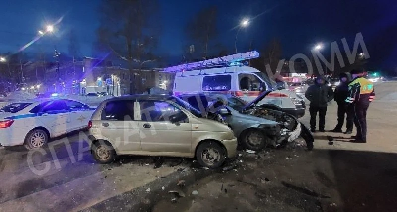 21 февраля 2026 года в Ухте на перекрёстке улиц Севастопольская и 30 лет Октября столкнулись два автомобиля Daewoo.