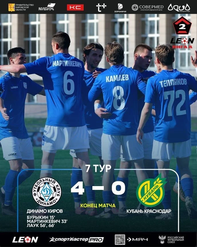 Кировское «Динамо» одержало крупную победу над одним из аутсайдеров чемпионата.