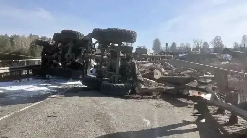 Лесовоз опрокинулся в Слободском районе после столкновения с «Рено Дастер» в 8.30 утра. Брёвна рассыпались по проезжей части и травмировали двух дорожных рабочих, сообщили в ГАИ.