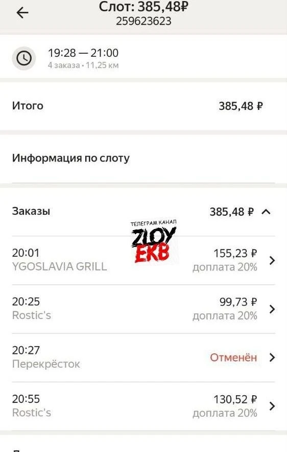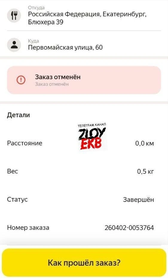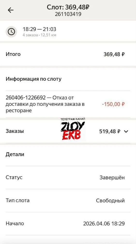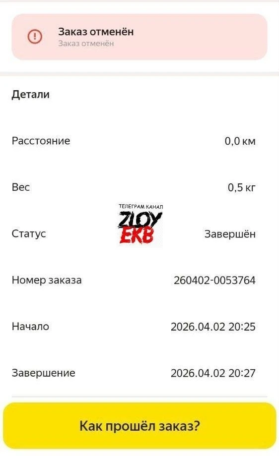 В приложении висит «отказ от заказа» и скрин, что отменили через 2 минуты. Доказать, что это сделал Яндекс, проблематично. Нужен живой сотрудник, который проверит по номеру заказа. Но они на контакт не идут — только бот. А бот требует доказать, что не курьер отменил. Это невозможно: у курьера нет функции «кто нажал отмену». Номер есть. Этот отменили — тут же пришёл следующий. И не в первый раз: историю чистят раз в 3 месяца, ранние не доказать.