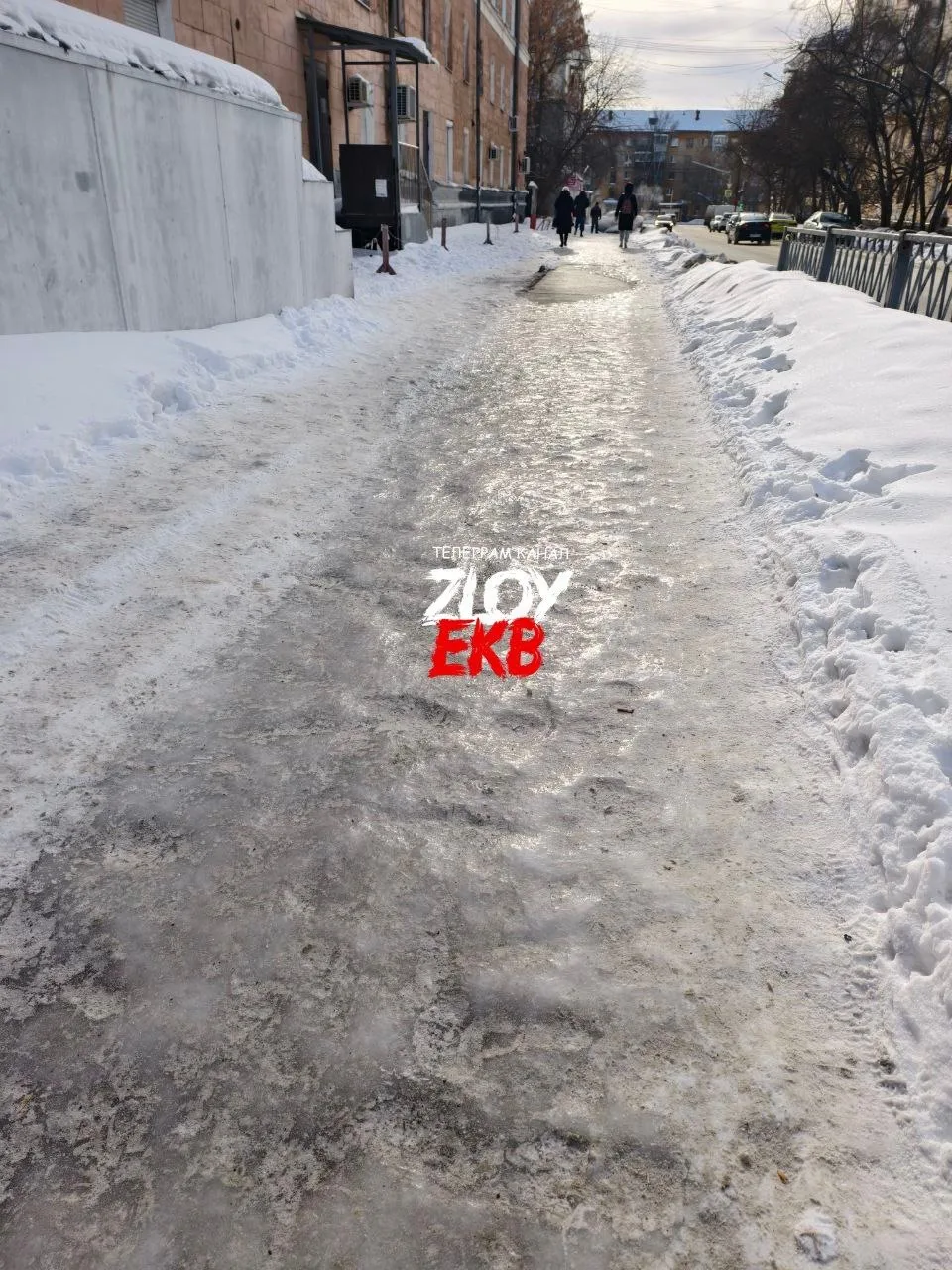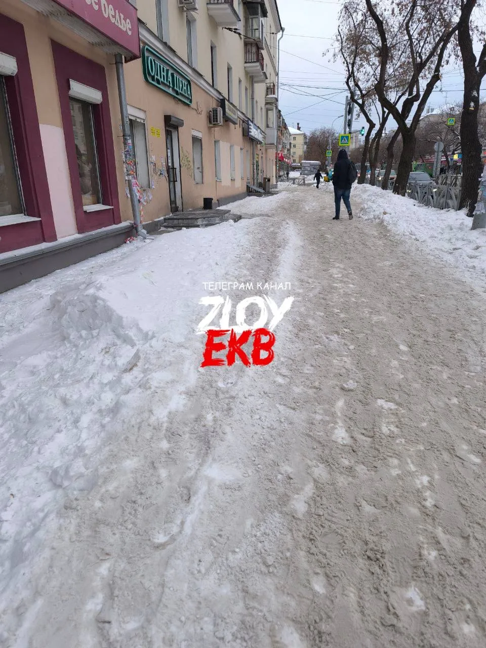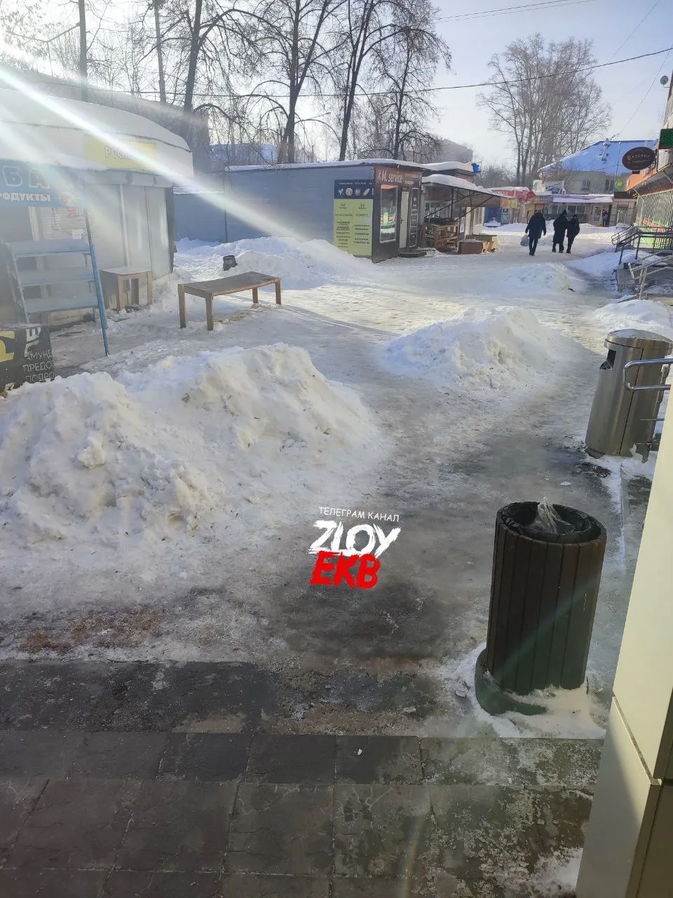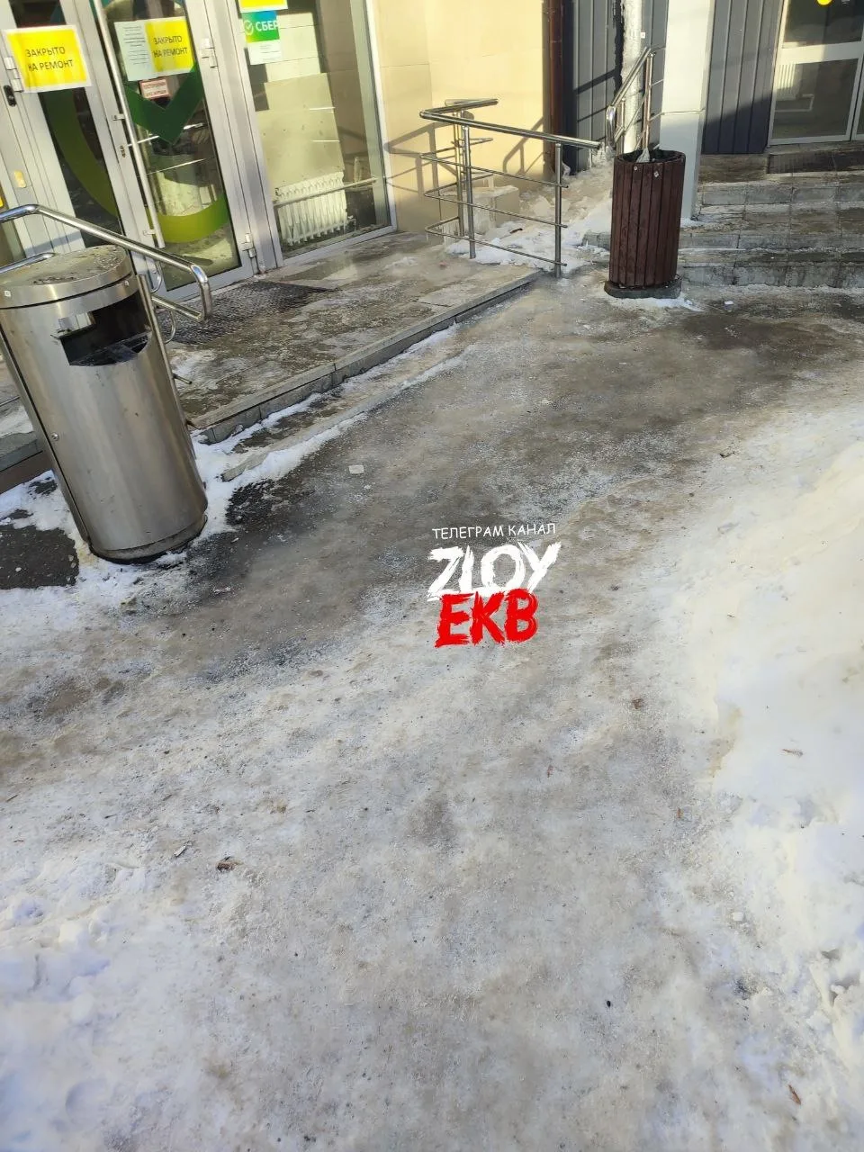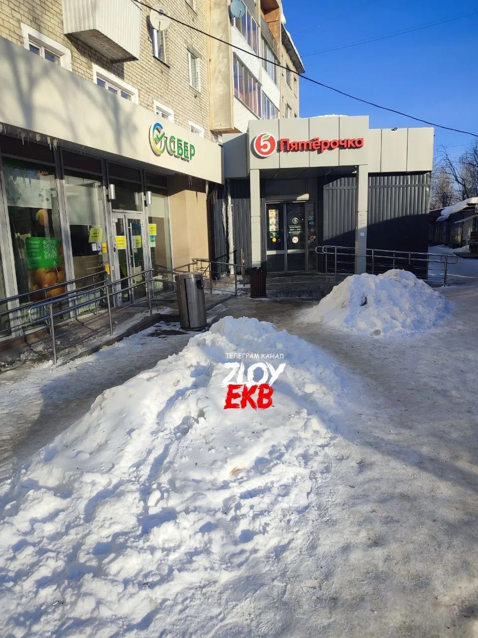Снег и лёд. У социально важных объектов, Сбер, аптека, продуктовые, сплошные сугробы и лёд. Местный дворник когда то солью там посыпал раз-два и всё.