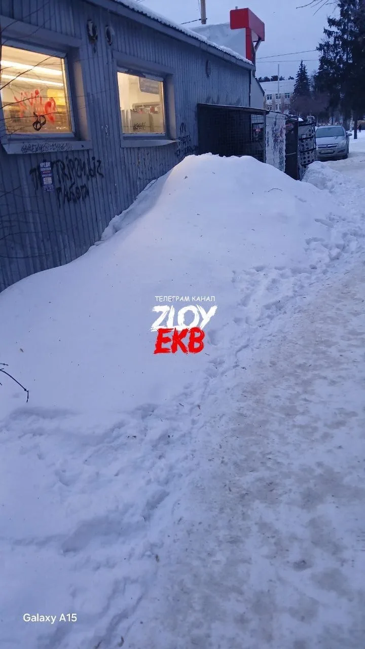 Вы такие молодцы почистили свою крышу от снега и все на этом закончилось .Уже не первую неделю вы так и не убрали за собой, мало того что после вас мусора немеренно и крысы пешком ходят теперь ещё для полного счастья горы снега .
