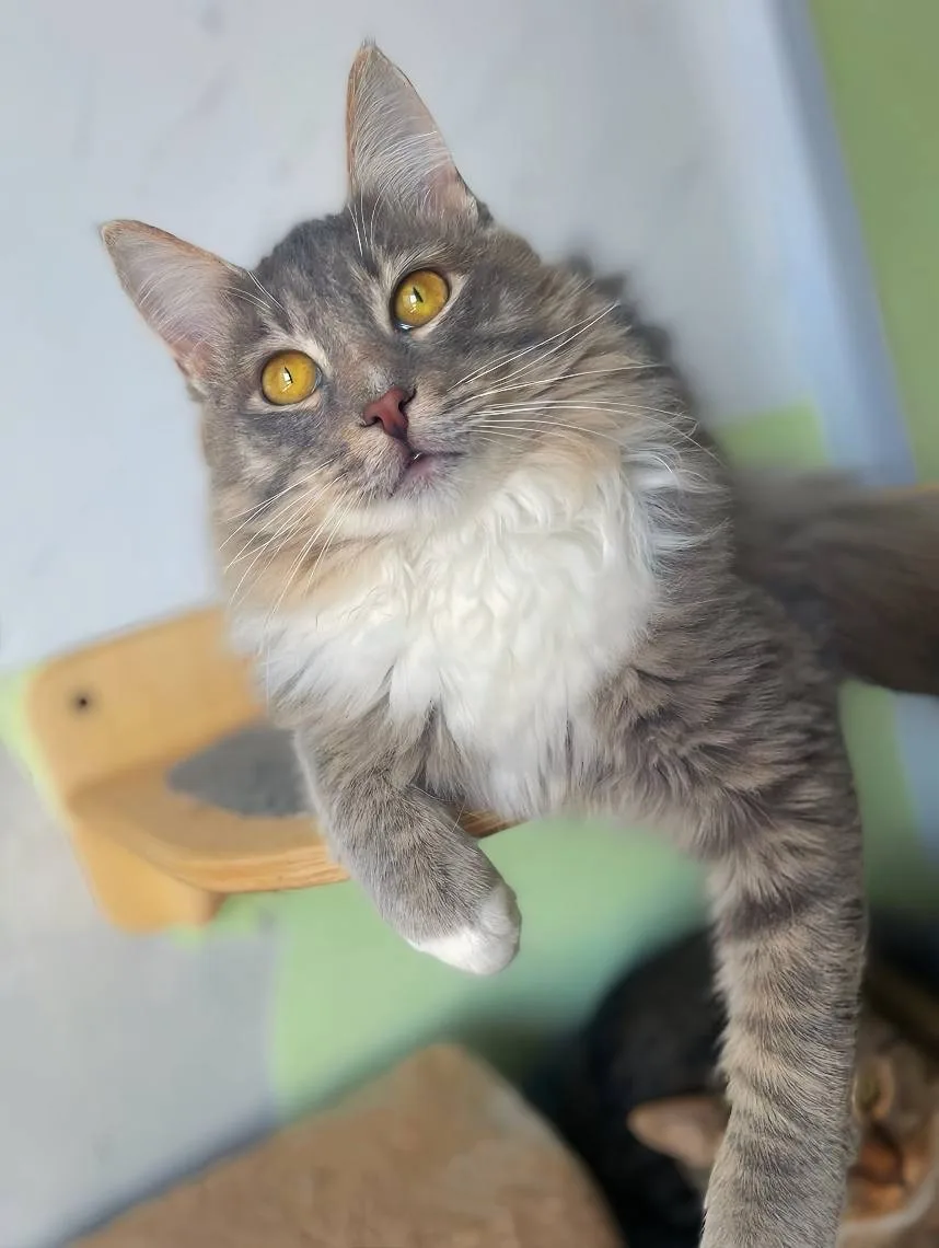 Рокки — длинношёрстный, грациозный котик. Очень любит ласку и с удовольствием подставляет бока для поглаживаний.