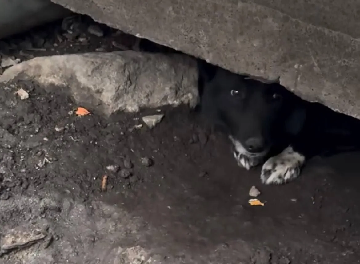 Найду заметили под крыльцом «ДОМа», где она прожила около семи лет. Когда собаке перекрыли вход в укрытие, она сама прорыла яму с внешней стороны и забралась внутрь. Выбраться обратно она не смогла. Тогда руководство магазина убрало доски, которыми заколотили крыльцо. Сейчас волонтеры пытаются устроить Найду в приют.