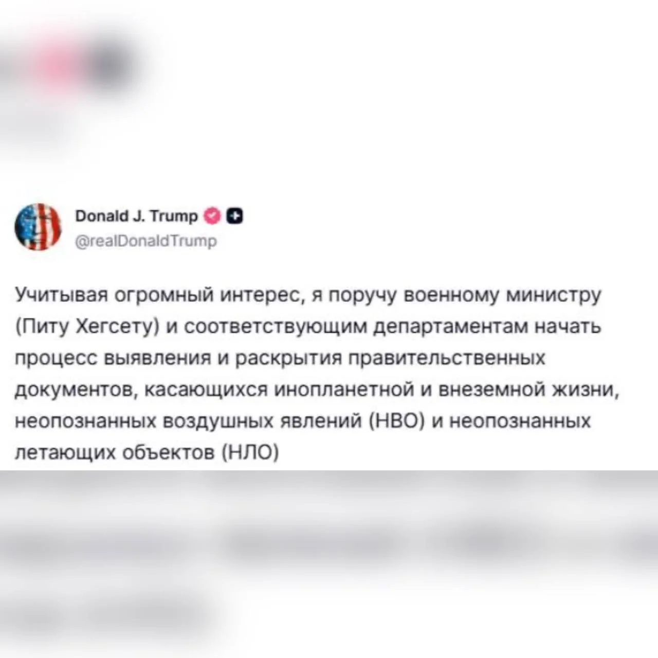 ⚡️Трамп пообещал обнародовать информацию об инопланетянах.