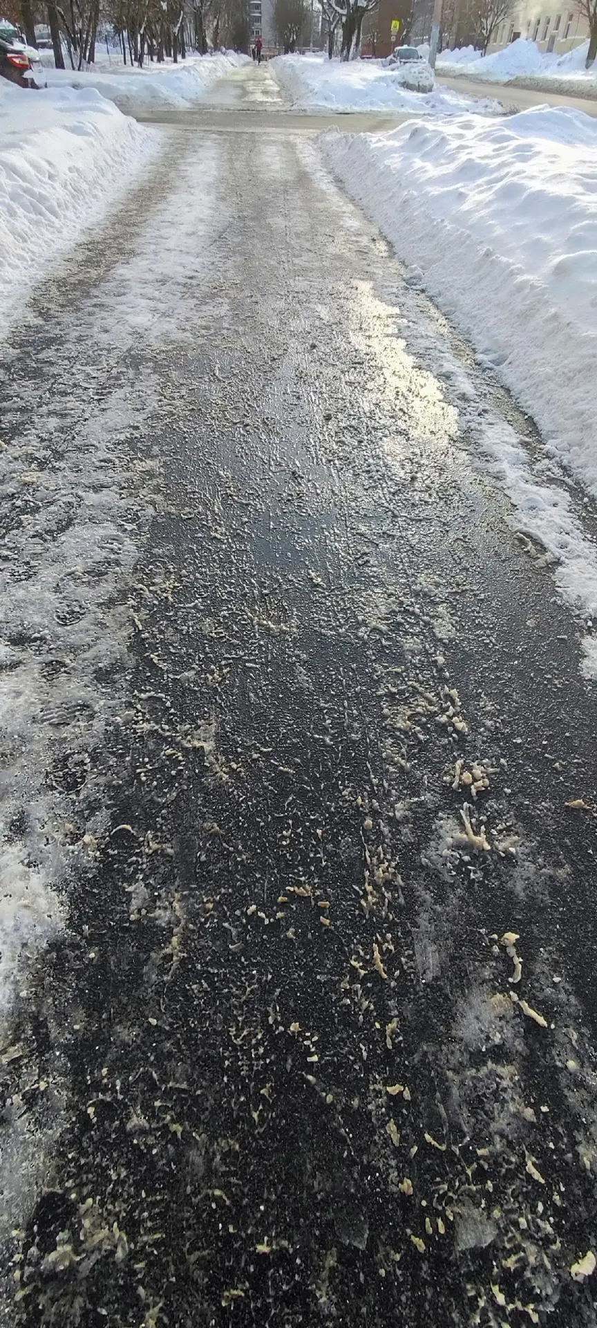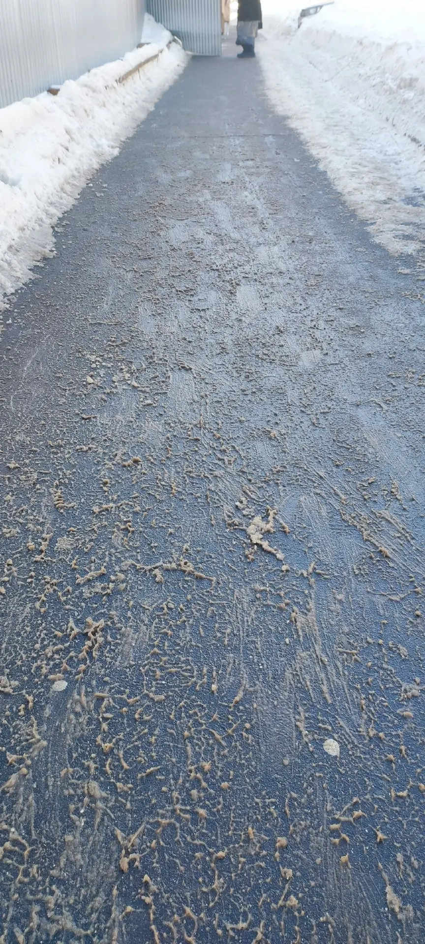 Не раз уже писали про реагенты на тротуарах. Я в этот раз не выдержала и решила опять поднять эту тему. Может отделение по благоустройству города уже задумается всё таки! На фото всё видно, описывать не буду. Хочу сказать, что как зима начинается у нас, так сразу ассоциация - грязь, каша, слизь на дорогах, реагенты... Что вы всё стараетесь до асфальта чистить глубокой зимой? Пусть лежит снег и не надо никаких реагентов. Снег выпал - убрать и всё!!! Ближе к весне, когда будет снег подтаивать и замерзать, вот тогда можно и реагенты разбросать немного. Зачем этот мартышкин труд? Было хорошо, не скользко, снег лежал чистый, нет, надо насыпать кучу реагентов, потом каша, потом до асфальта расчищают и в итоге столько труда, а стало наоборот хуже и скользко. Хочу заметить, где на тротуарах не сыпят реагенты, а просто очищают снег, а такие места, слава богу, есть в городе, там прям приятно идти и думаешь, может наконец-то дошло уже до Администраций!