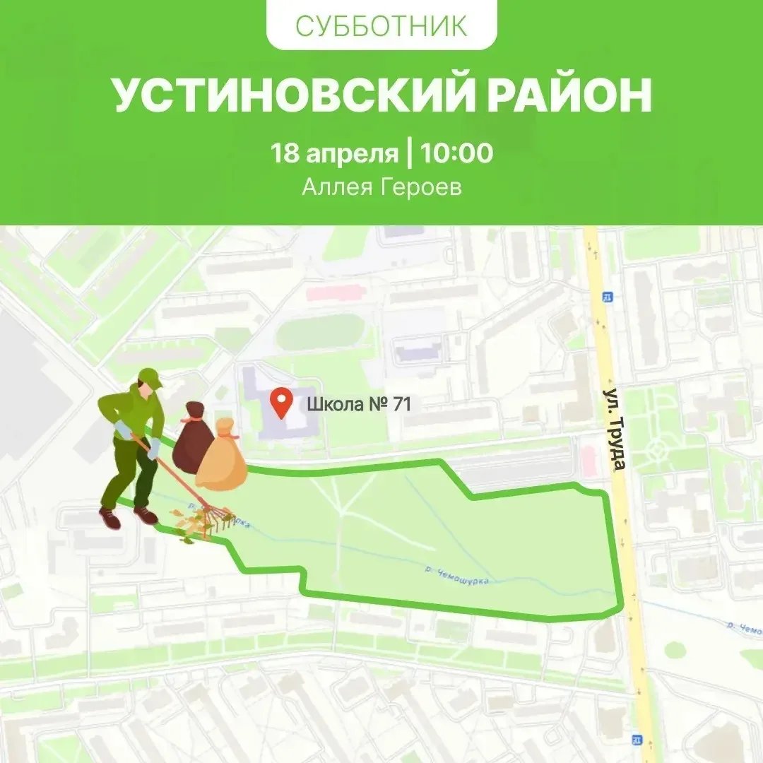 Кроме того, 18 апреля массовые субботники пройдут во всех районах города. Присоединиться могут все желающие.