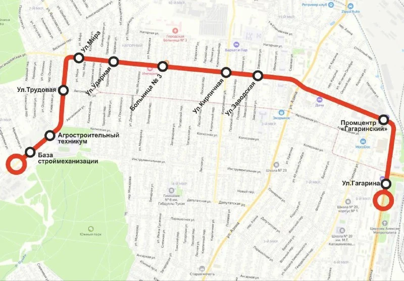 ️ База Строймеханизации - ул. Автономная - ул. Трудовая - ул. Областная - ул. Гагарина. Обратно: ул.Гагарина - ул. Областная - ул. Трудовая - ул. Автономная - База Строймеханизации.