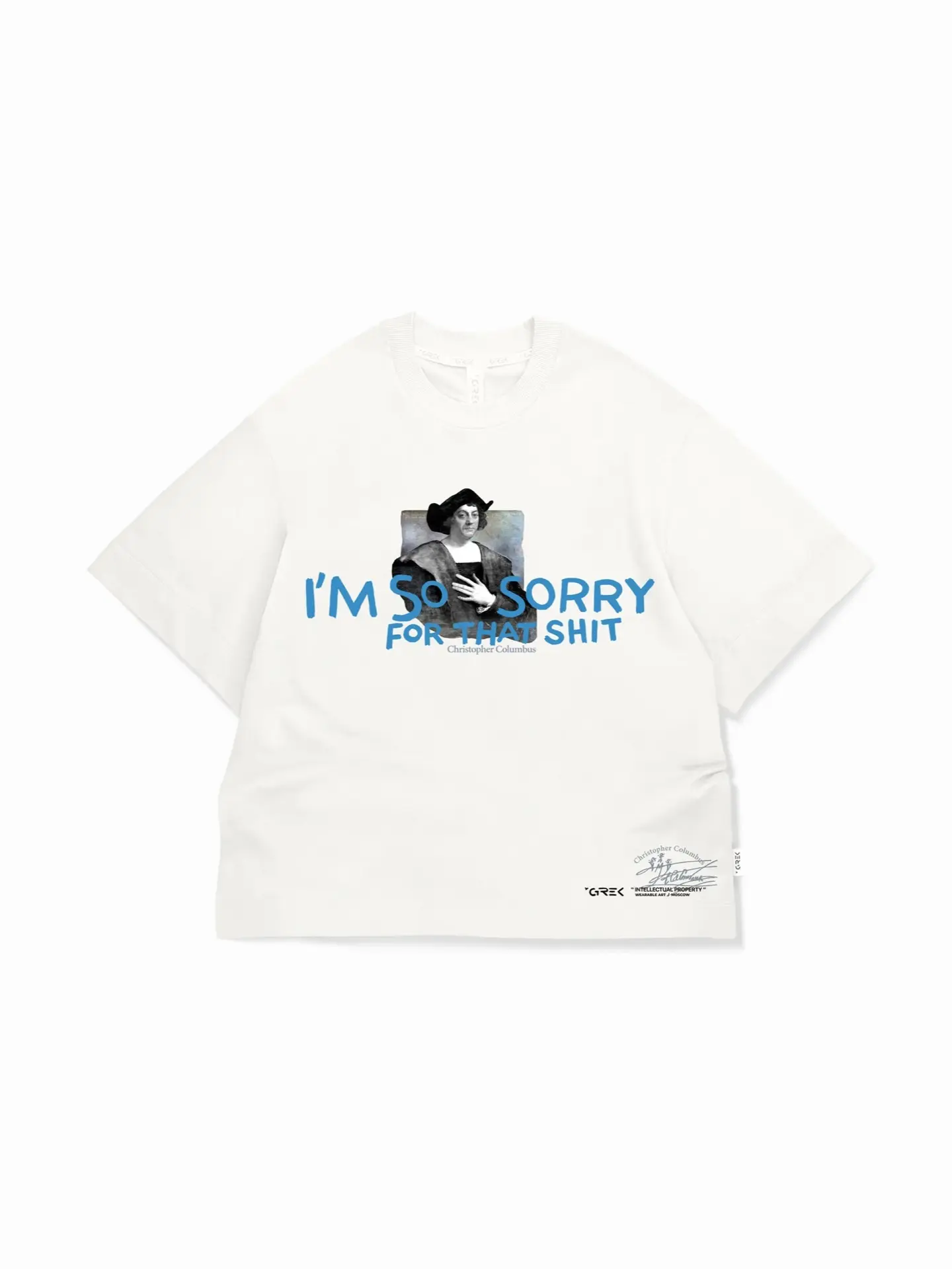 Почему-то думаю, что Колумб вполне мог бы высказаться сегодня именно так как вручную написано на этой футболке.