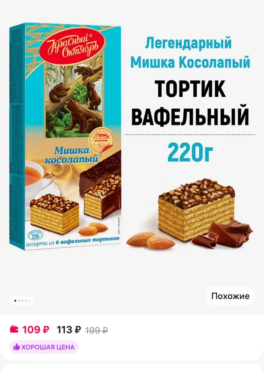 WB-> Красный Октябрь Торт вафельный Мишка Косолапый, 220 гр - от 106₽ до 109₽